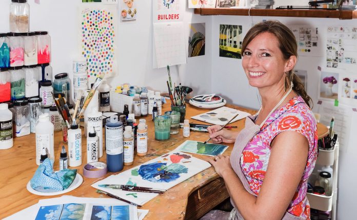 But while her academic qualifications may be science-based, her fluid acrylics are colourful, characterful works imbued with a sense of wonder and whimsy.