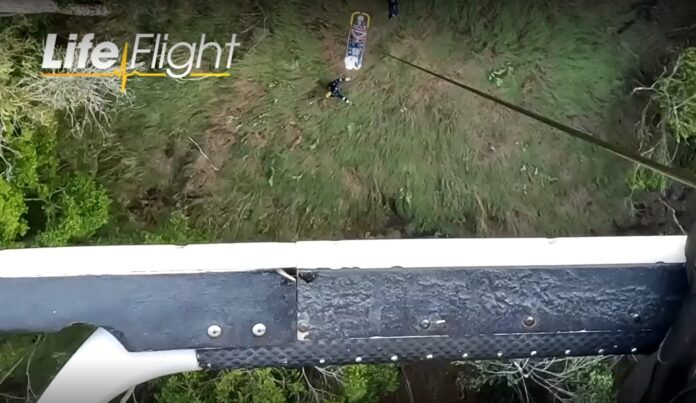 Due to the terrain, it was decided it was safest to winch the QAS flight paramedic and LifeFlight rescue crew officer, along with a stretcher, down to the patient.