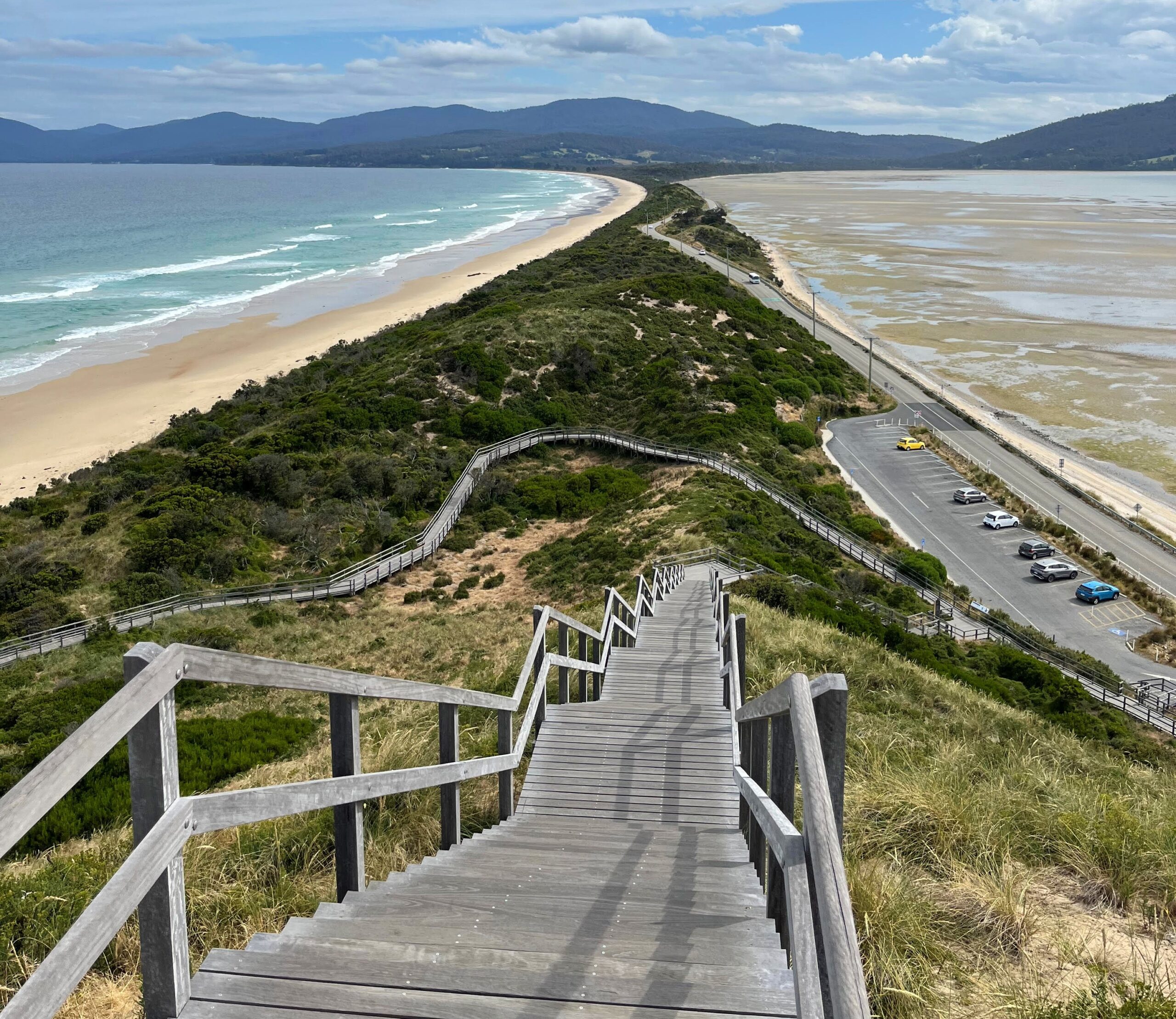Reached by a regular car ferry, the first surprise is The Isthmus (known locally as The Neck), which joins south and north Bruny and has Truganini Lookout.