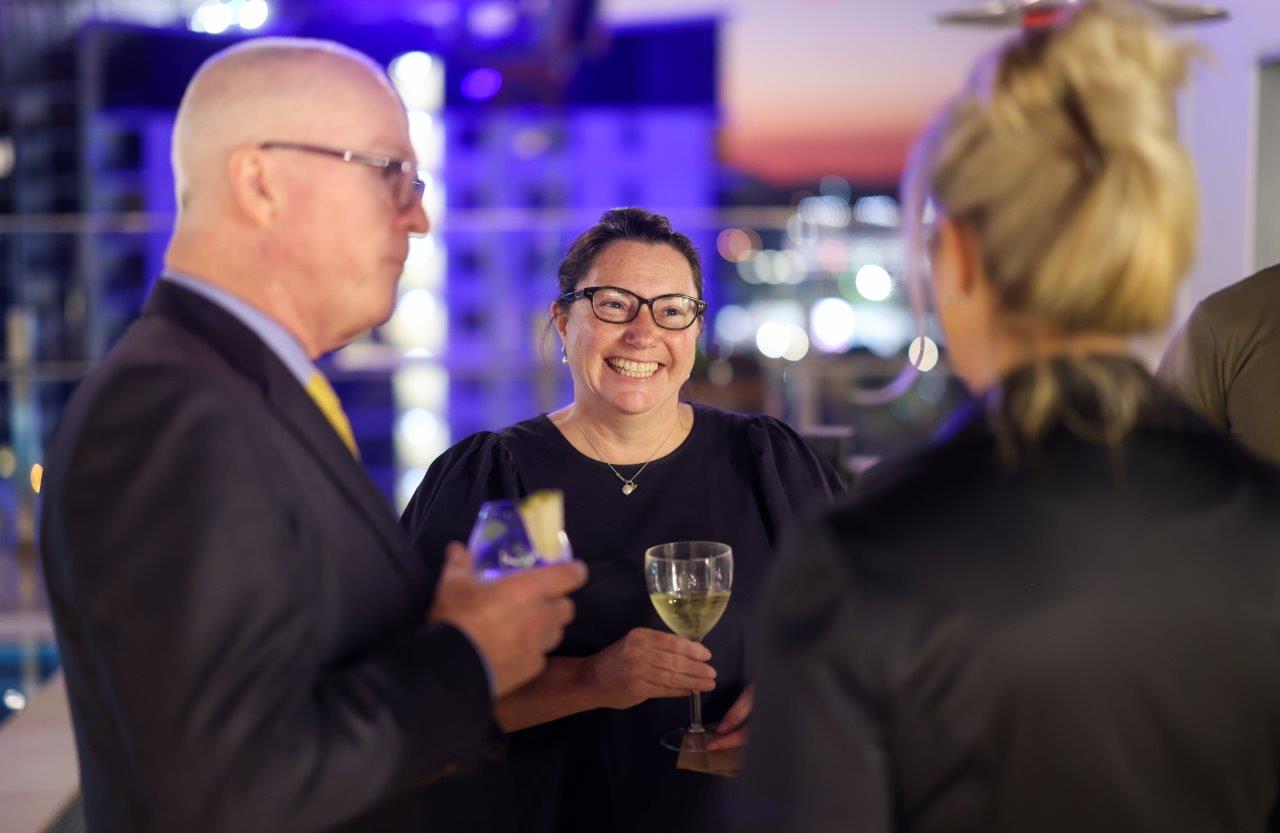 Community members gathered last week for sunset drinks and canapes to celebrate the first birthday of one of the new Maroochydore CBD’s landmark buildings.