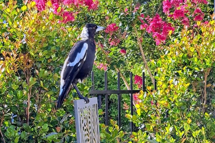 A magpie was relaxing on a post when Maureen Brooks snapped this photo.