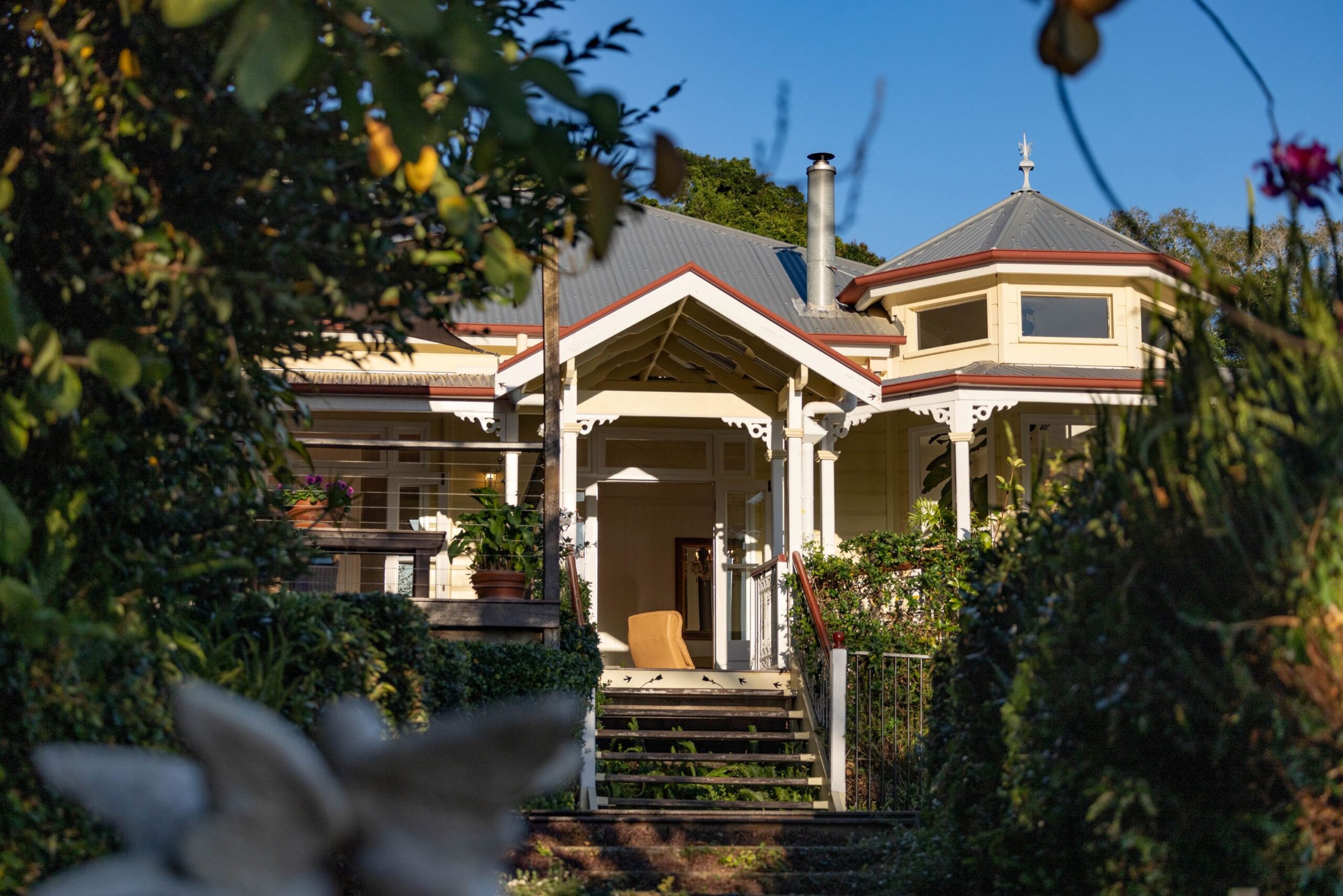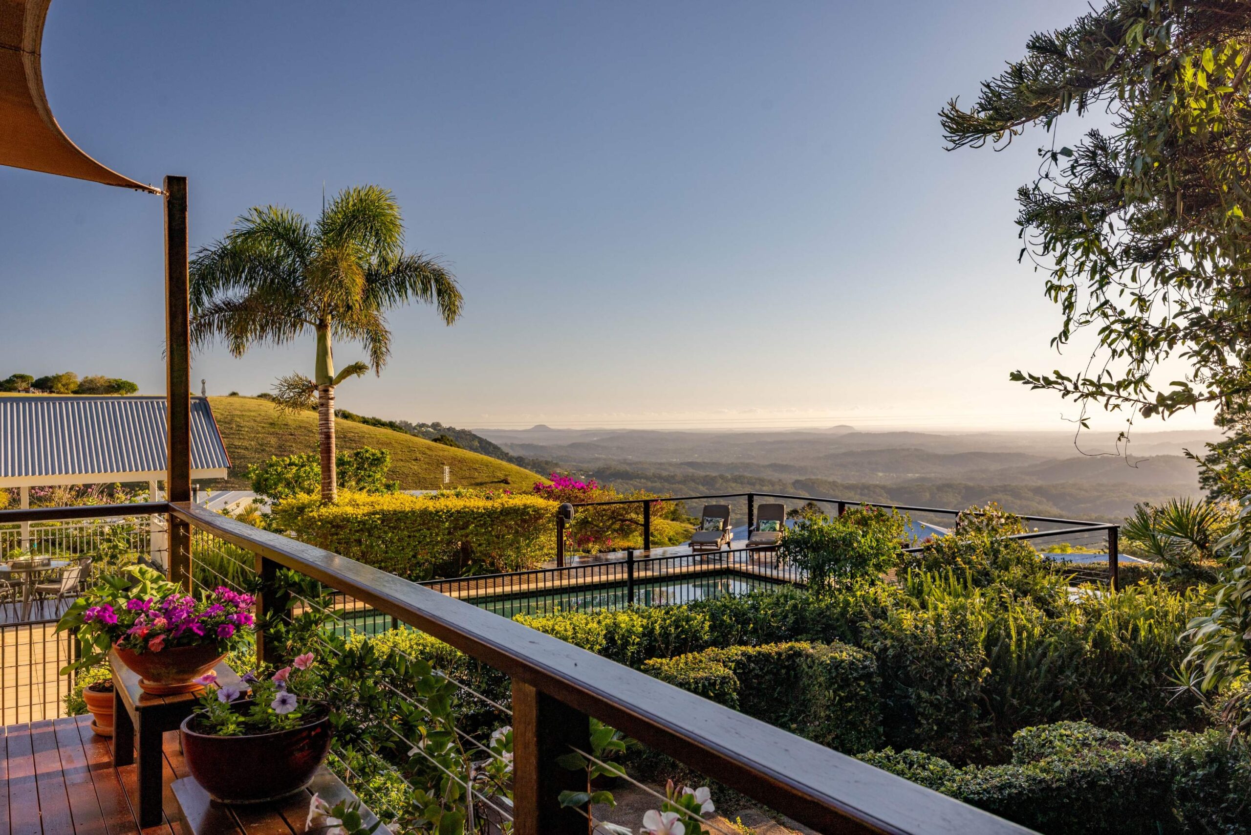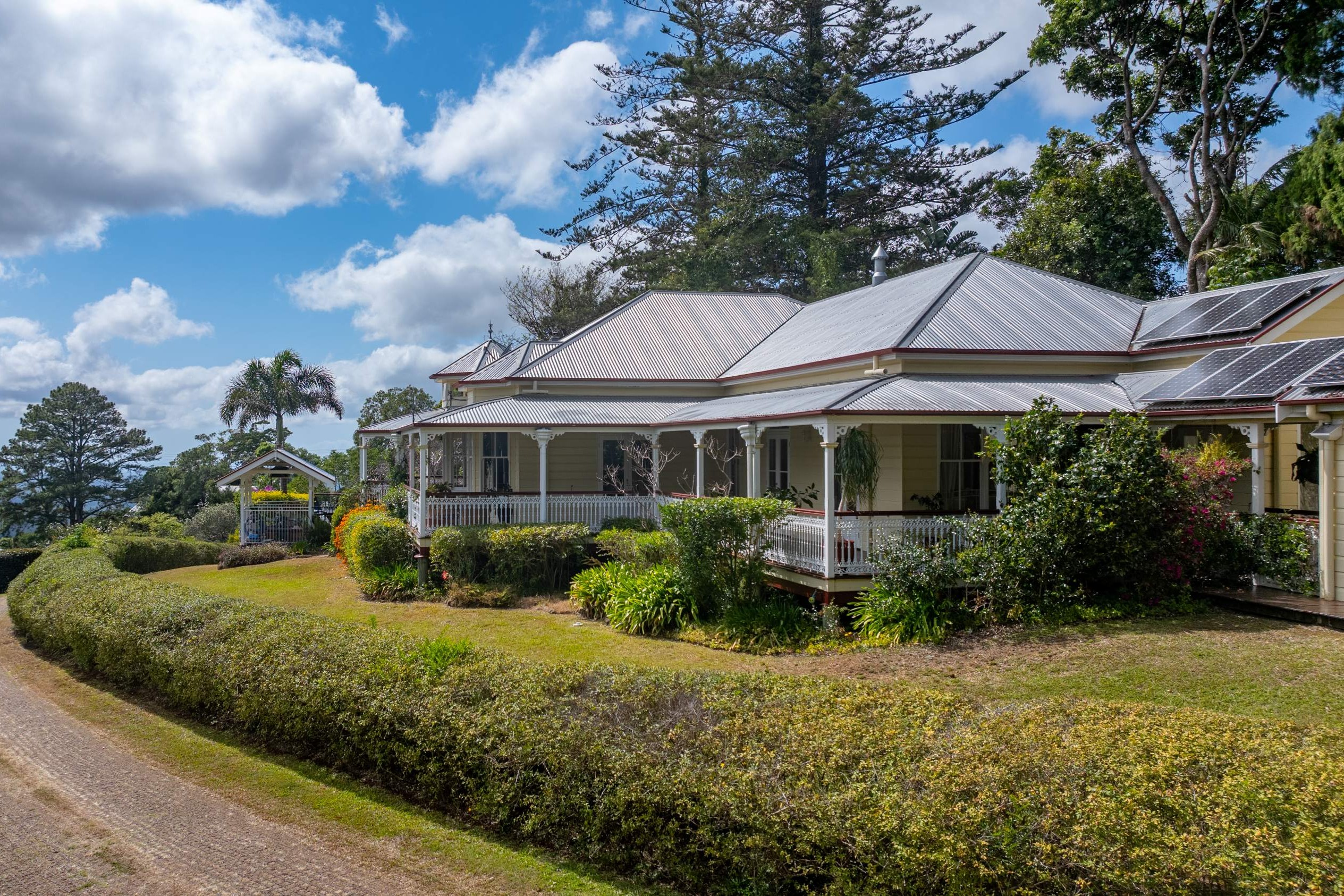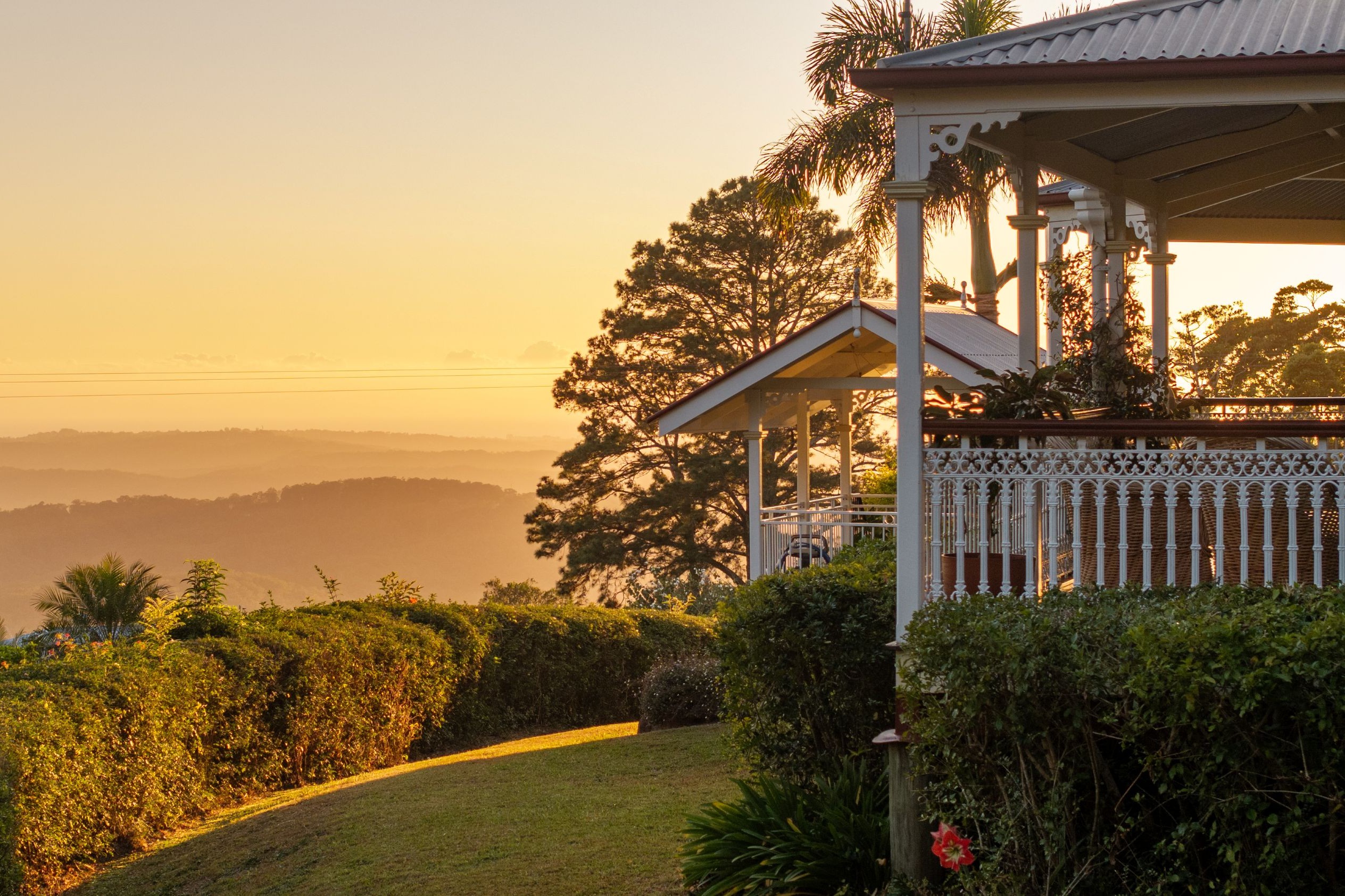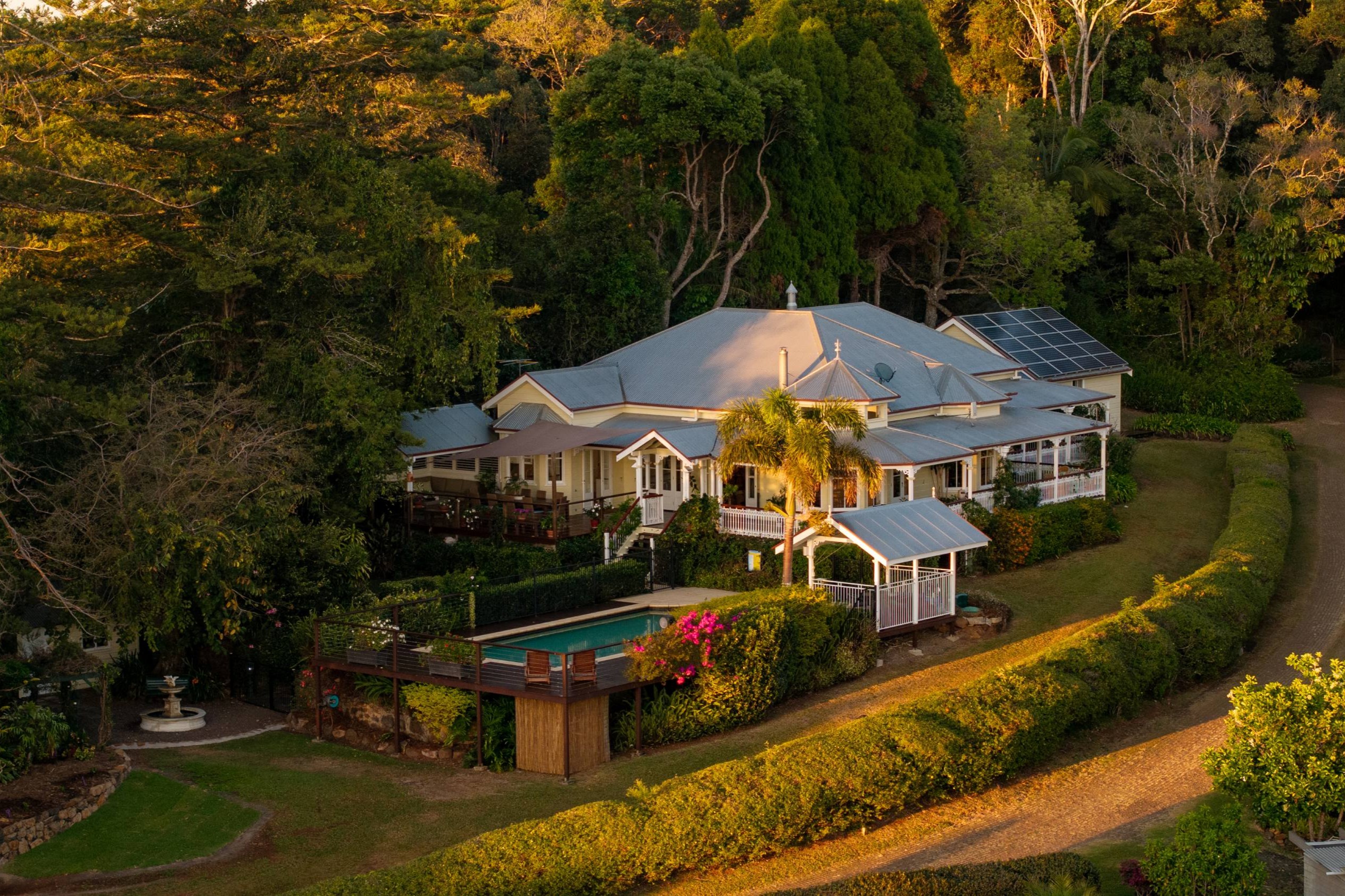 Built in 1993 as a homage to late Victorian design, the property sits 450 metres above sea level, capturing north-easterly vistas across farmland to the Sunshine Coast.