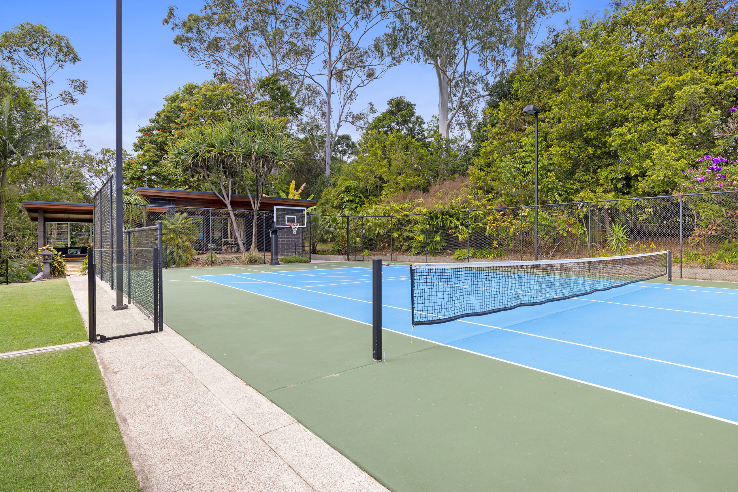 Wellness facilities include a full-size, floodlit tennis court with basketball and netball rings and a gymnasium.