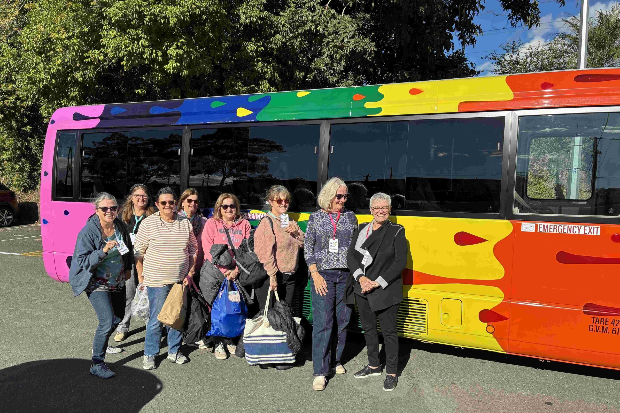 World traveller Josie Watts saw a gap in the market for op shop bus tours when she returned to the Coast, so she purchased a funky, eye-catching ‘rainbow’ bus and started her own small business.