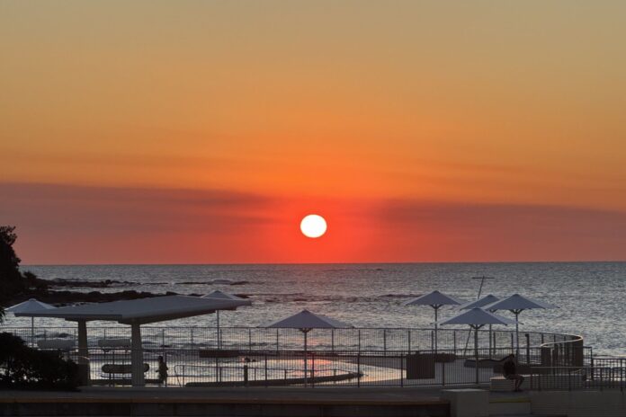 Smoke from the recent bushfire at Moreton Island created these stunning sunrise colours with Kings Beach pool, Caloundra in the foreground. The photo was taken by Lesley Evans.