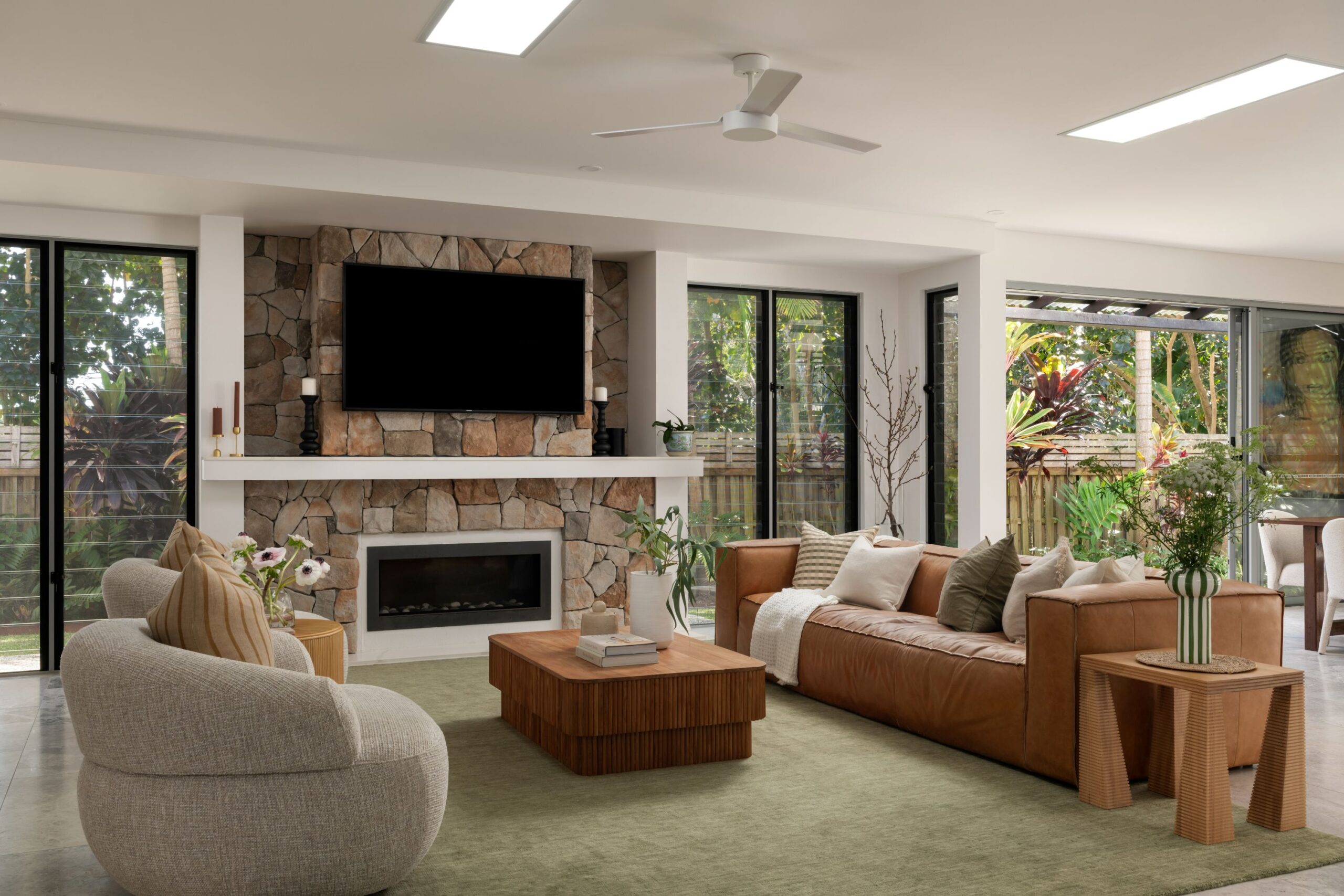 Located at 1 Ngungun Street, Dicky Beach, the home blends modern luxury with a relaxed beach house feel.