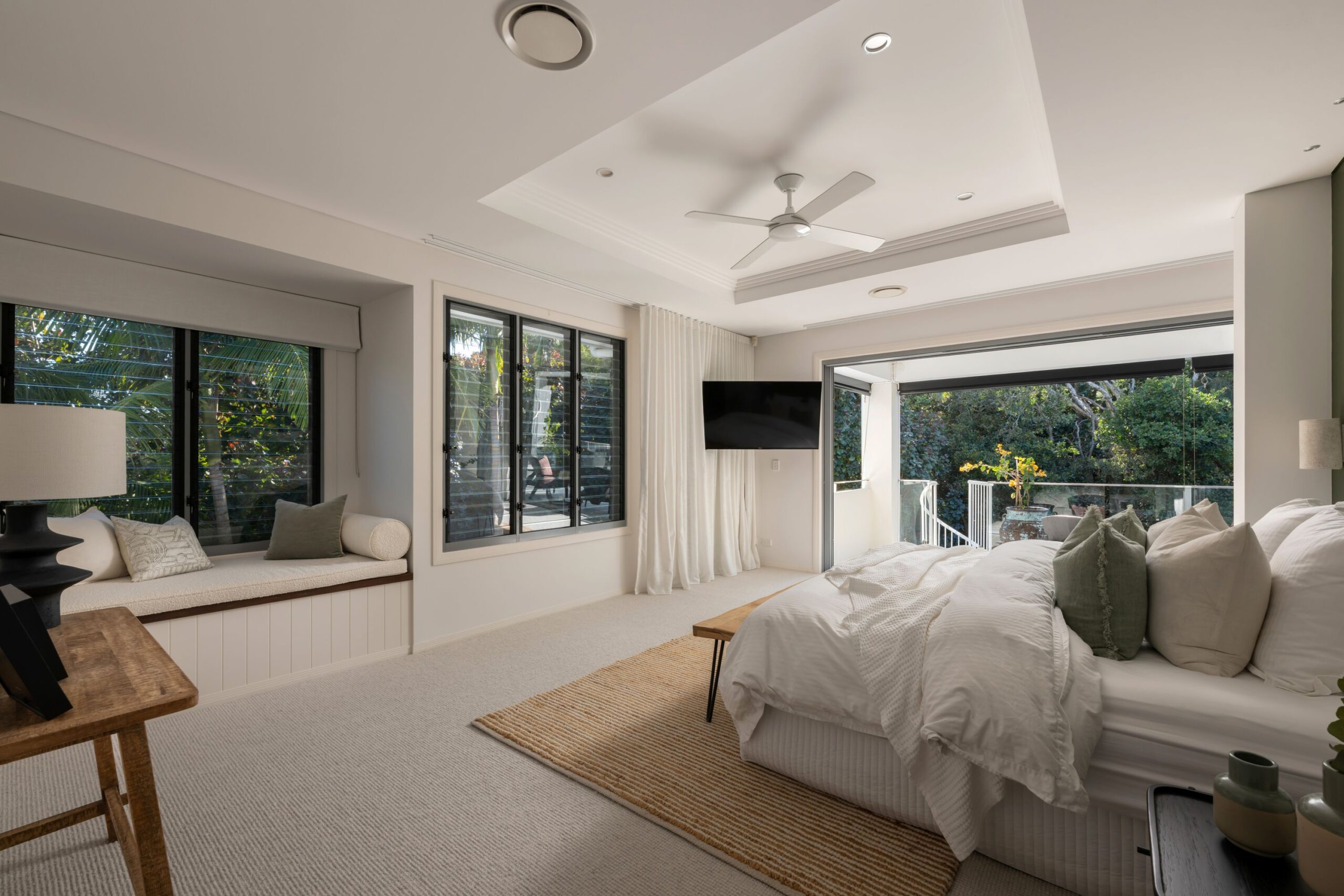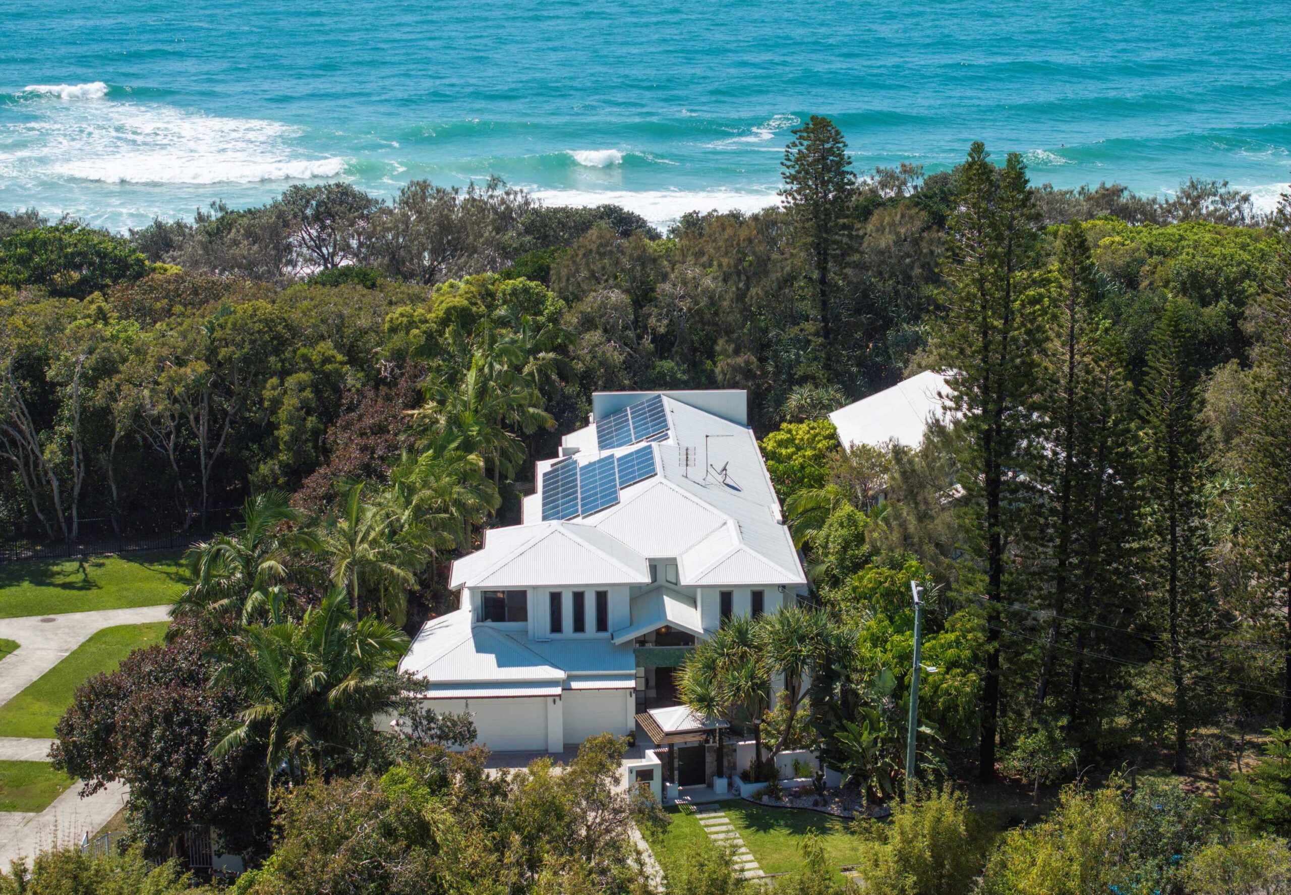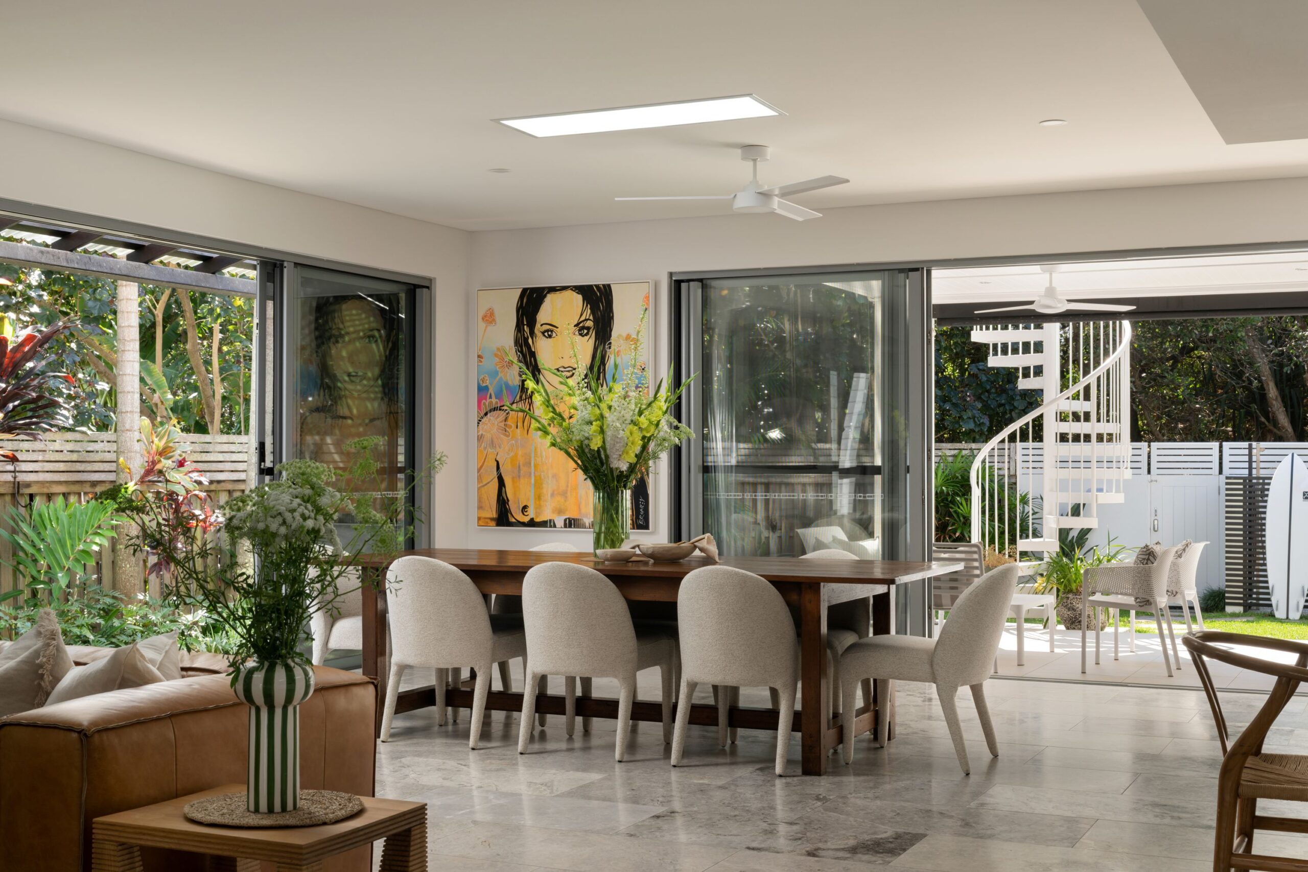 Located at 1 Ngungun Street, Dicky Beach, the home blends modern luxury with a relaxed beach house feel.