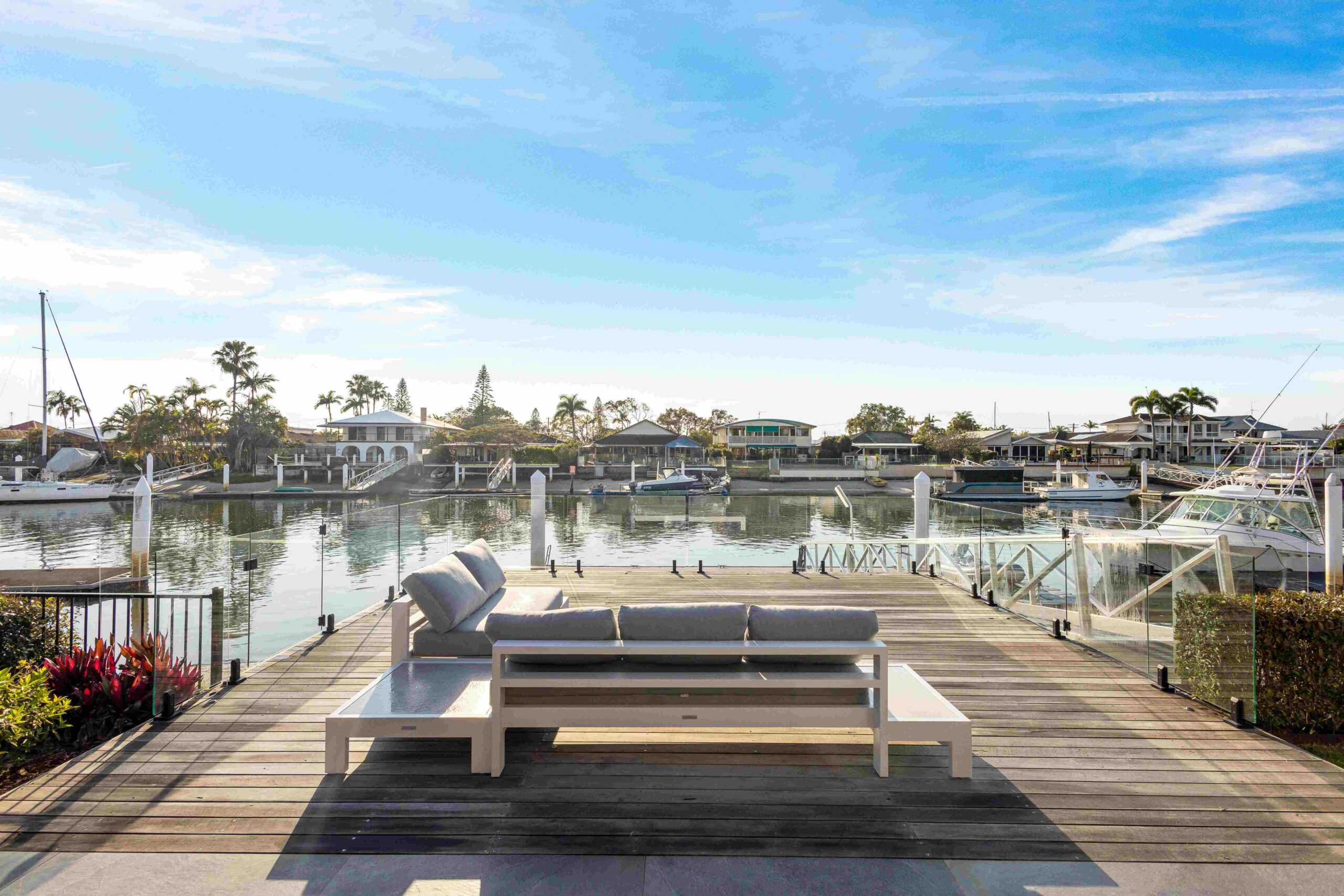 A well-designed covered alfresco area leads to the overwater deck, in-ground heated pool and a private pontoon and jetty, which is a safe space to house a boat or jet-ski.