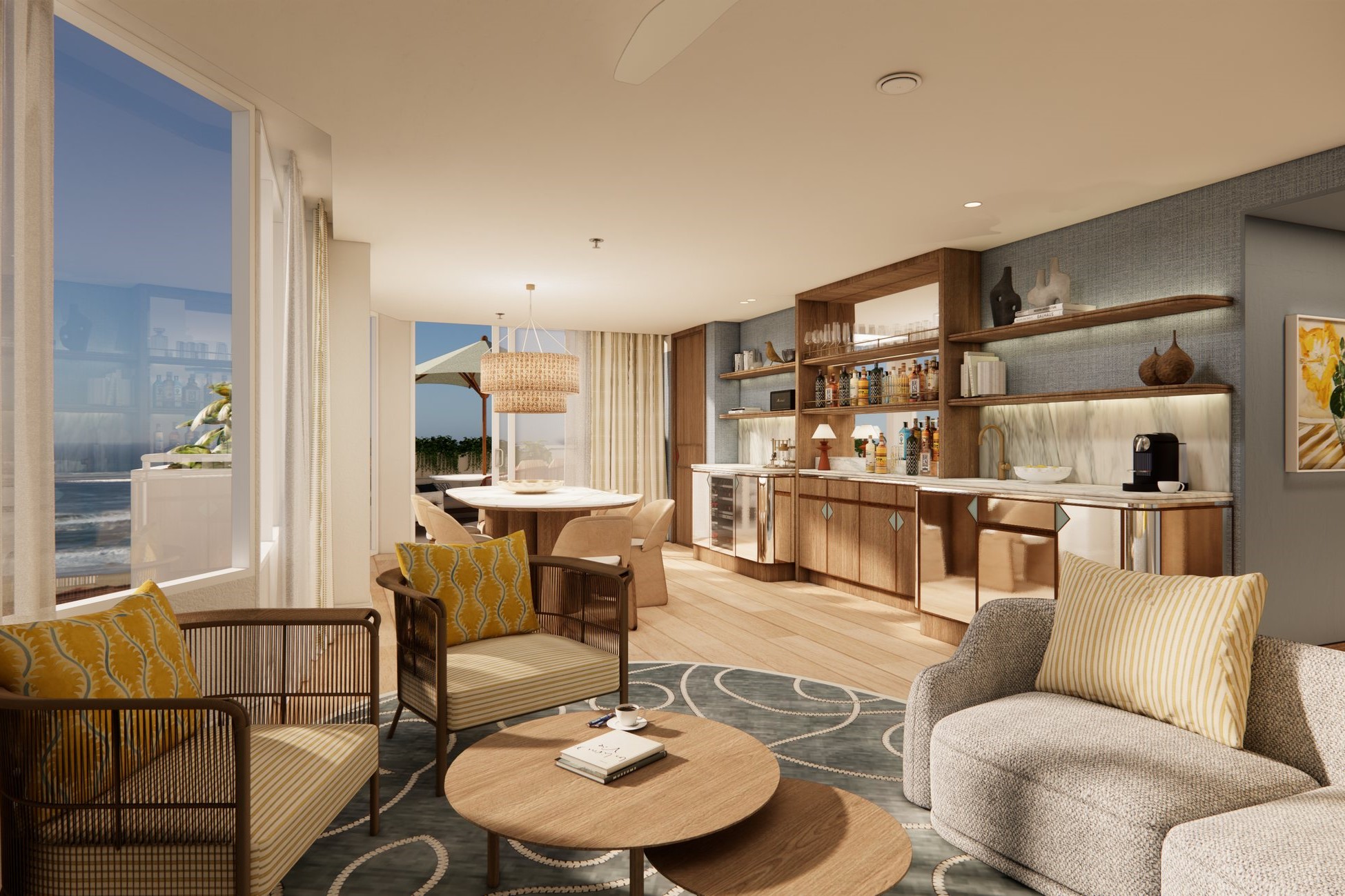 The pinnacle will be the oceanfront Elysium suite, featuring a private plunge pool and sweeping views.