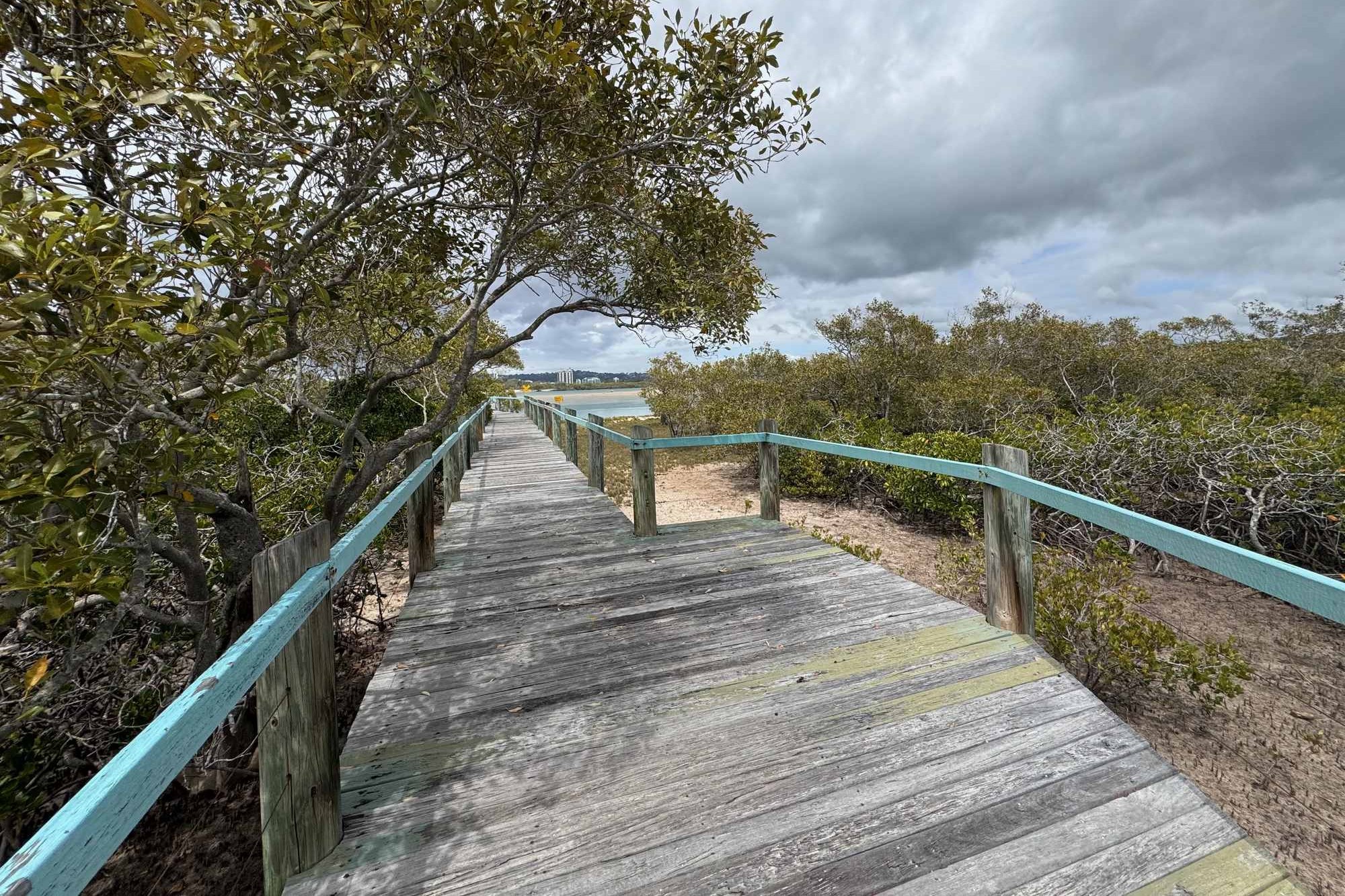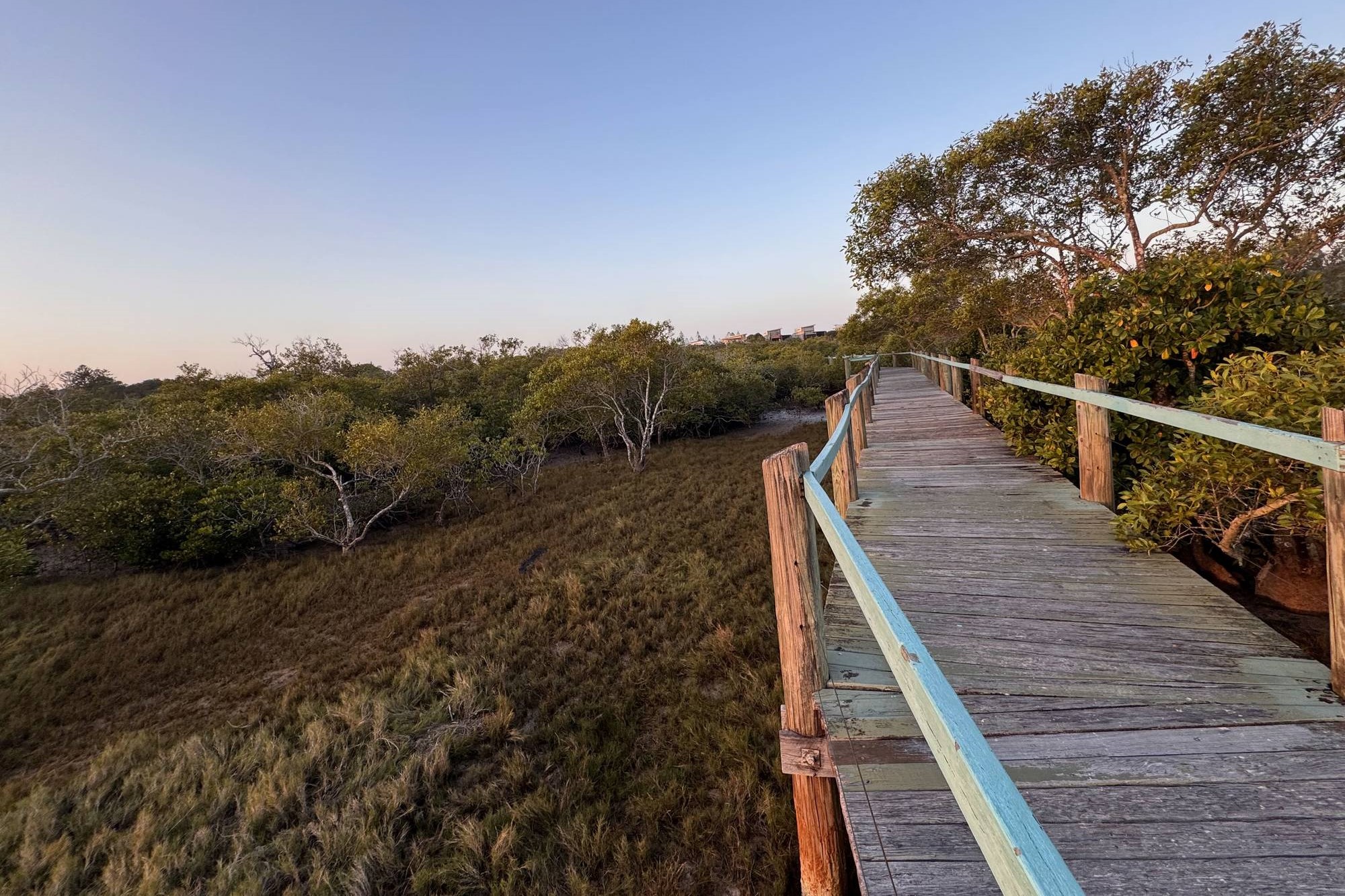 The boardwalk stretches south from the Novotel Sunshine Coast Resort and The Sebel Twin Waters to the northern bank of the Maroochy River.