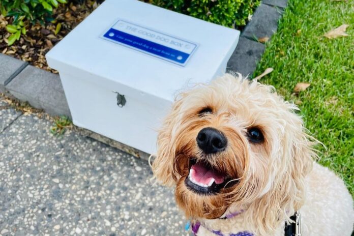 “The Good Dog Box is a treat bin that has four separate containers filled with treats to cater to various dog allergies and likes. When people pass by, they can stop with their dogs, give a treat and enjoy a moment.”