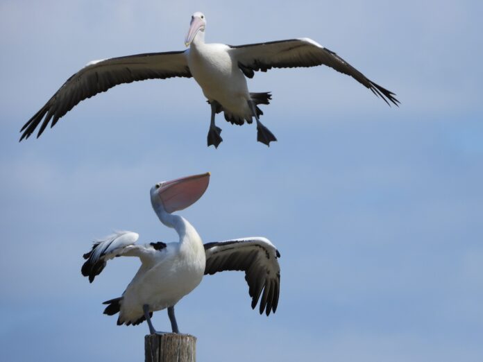 “Even pelicans compete to occupy prime real estate,” says photographer Sandy Gillis who captured two pelicans ‘fighting’ over this landing pole at Bli Bli.