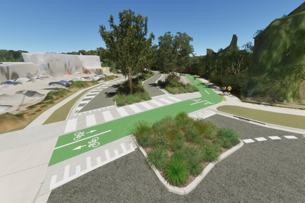 Councillor Christian Dickson said the inclusion of a pedestrian path, crossings and a two-way riding path separated from the road will give locals the option to safely walk or ride to nearby shops and gain access to the new Stringybark Road pedestrian and cycling bridge.