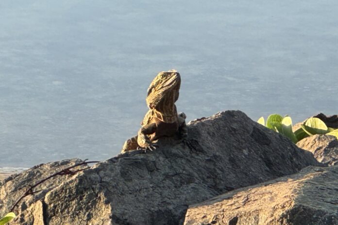 A healthy water dragon enjoying the morning sun at Happy Valley, Caloundra. Photo taken by Lesley Evans.