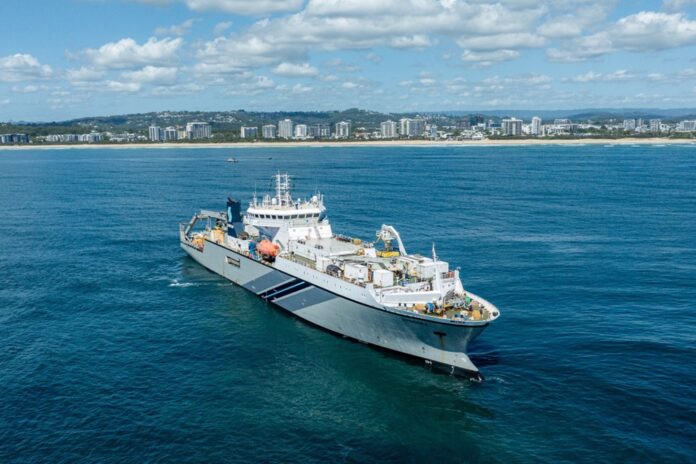 The 150m Dependable brought a major subsea cable to Maroochydore on Tuesday, creating a key link between Australia and the United States.