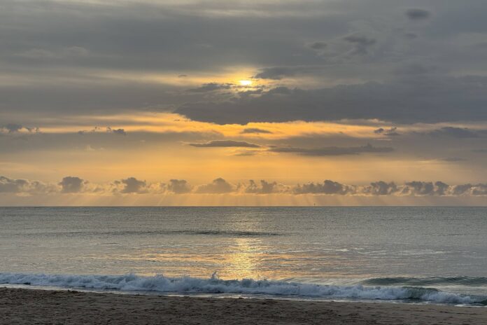 Lesley Evans snapped this photo of sunlight penetrating clouds over Kings Beach, Caloundra.