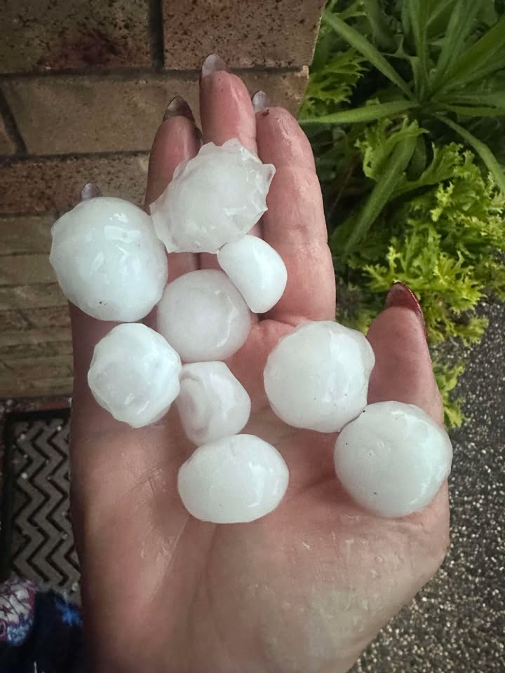 “Buderim got flogged! Anyone get hail bigger than this? Wowee!” wrote Elizabeth Smith (see main photo above).
