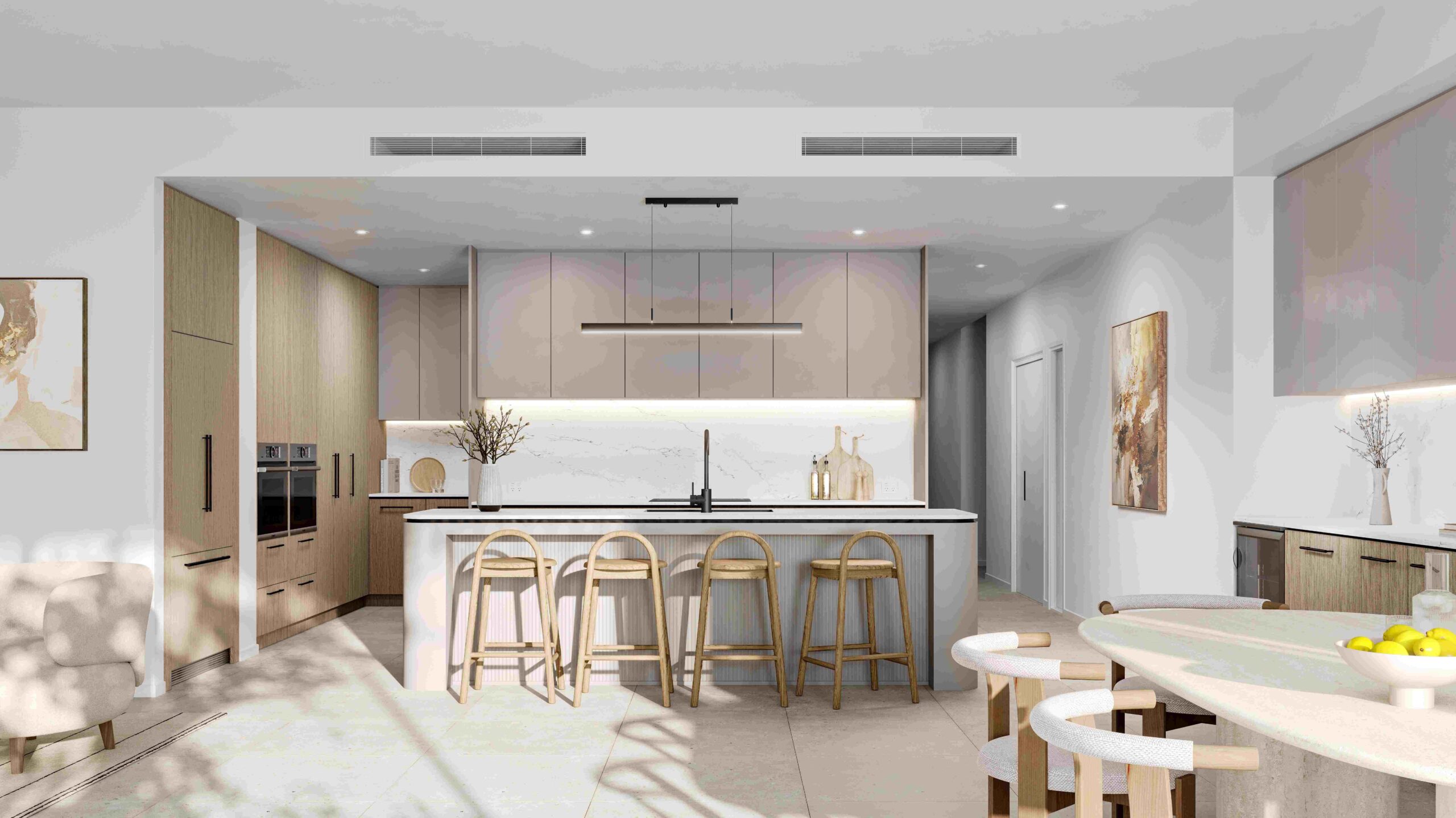 Spacious kitchen and dining area in one of Bask Bokarina’s last remaining 4-bedroom apartments.