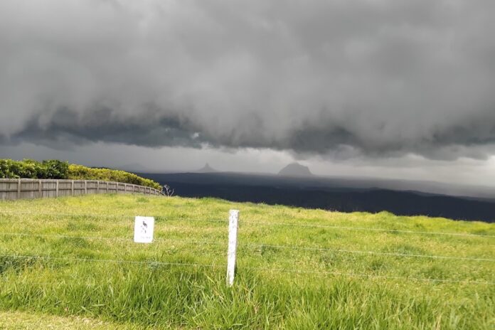 Caine Madden captured the drama of Monday’s approaching storm, which wreaked widespread havoc across the Sunshine Coast. This photo was taken at Mountain View Road, Maleny. It was certainly the eerie calm before the storm.