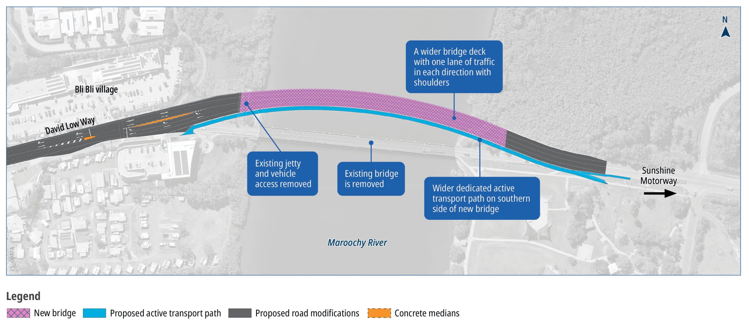 “On November 24, the Queensland Government released the proposed planning layout for the future upgrade of the Bli Bli bridge on David Low Way,” they said.