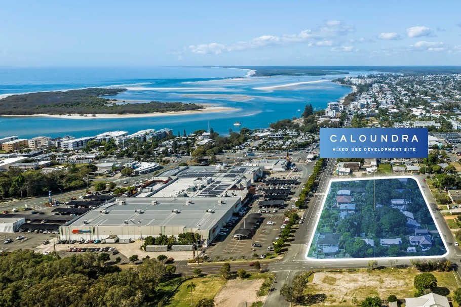 The land parcel is bordered by First Avenue, Mayes Avenue, Oval Avenue and Second Avenue directly opposite the Caloundra Shopping Centre.