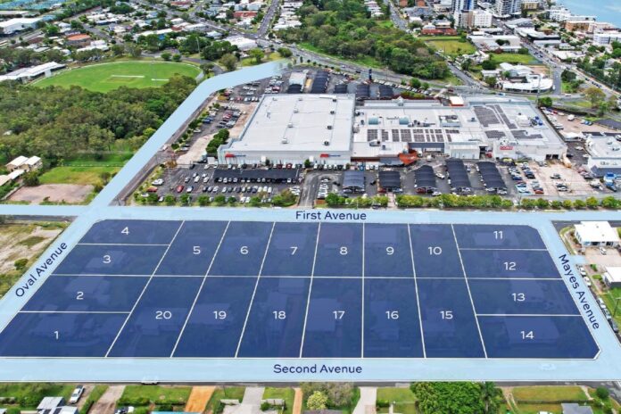 The land parcel is bordered by First Avenue, Mayes Avenue, Oval Avenue and Second Avenue directly opposite the Caloundra Shopping Centre.