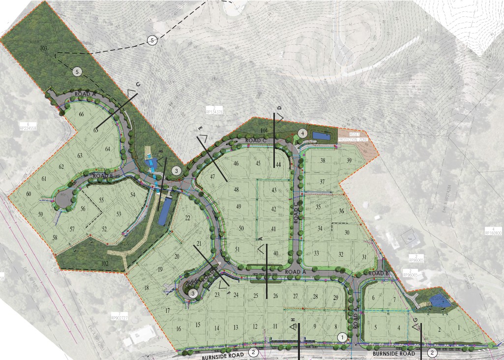 The proposed subdivision would be delivered across two stages: the first would include external works on Burnside Road and create 34 residential lots, while the second stage would add the remaining 32 lots.