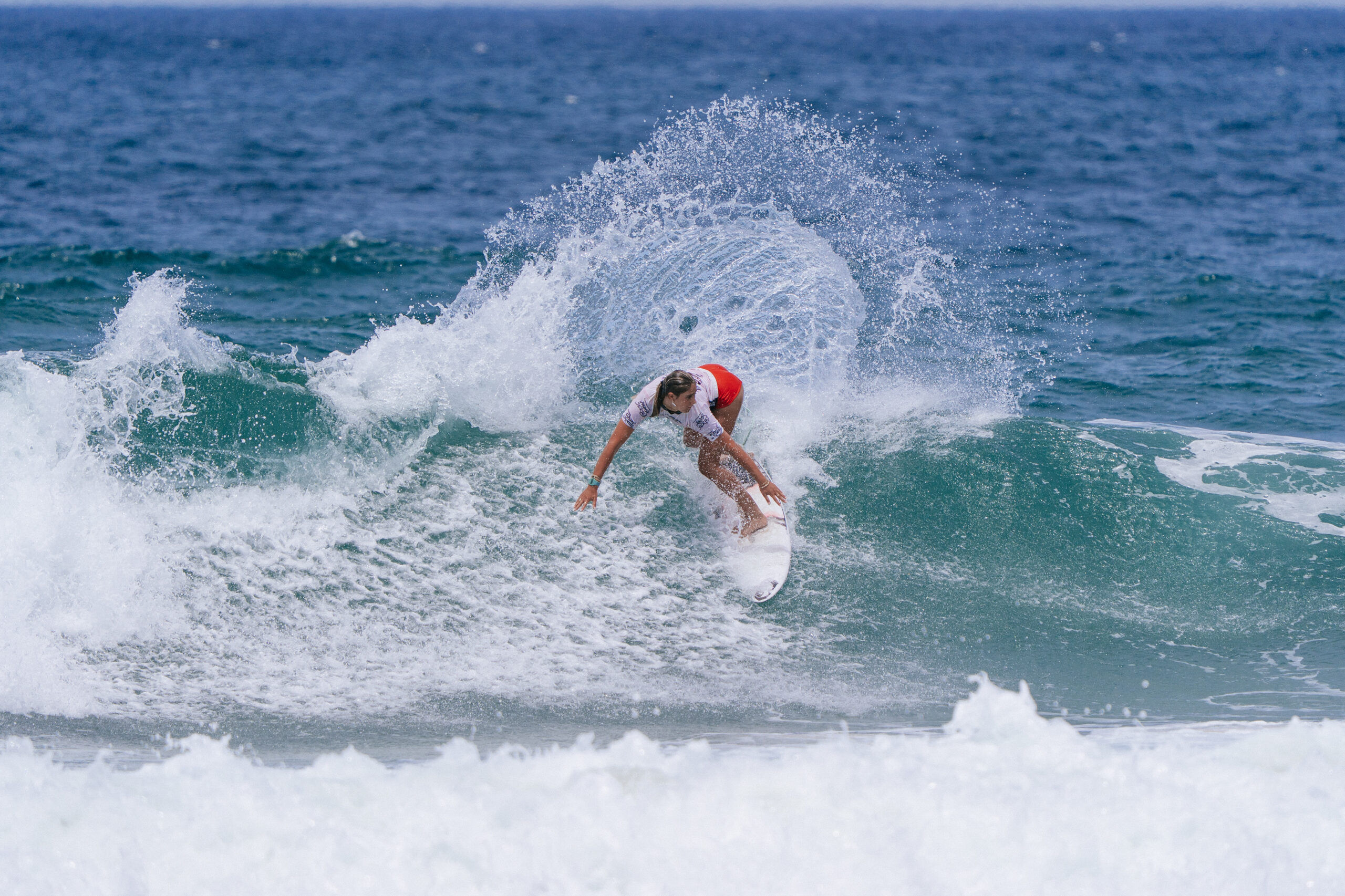 She dropped one of the highest scores of the day, an 8.25, to finish with a 14.15 heat total, narrowly defeating Ava Arghyros from Kingscliff, NSW.
