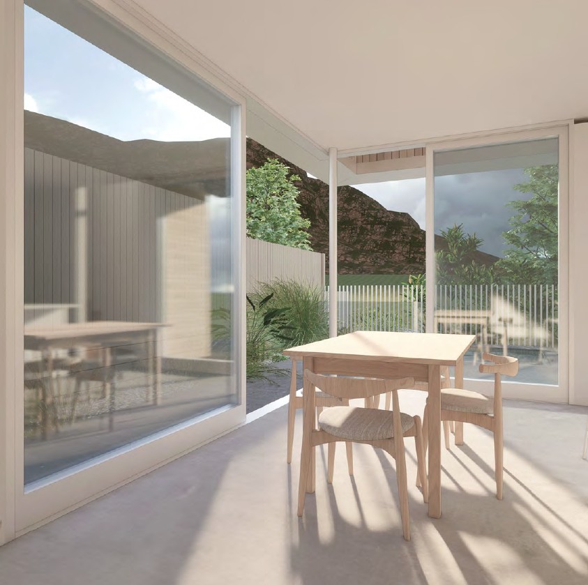 “Such features have influenced the resulting site conditions, avoiding extensive earthworks in favour for a stepped floor plan which largely maintains the site’s natural topography and gradients.”