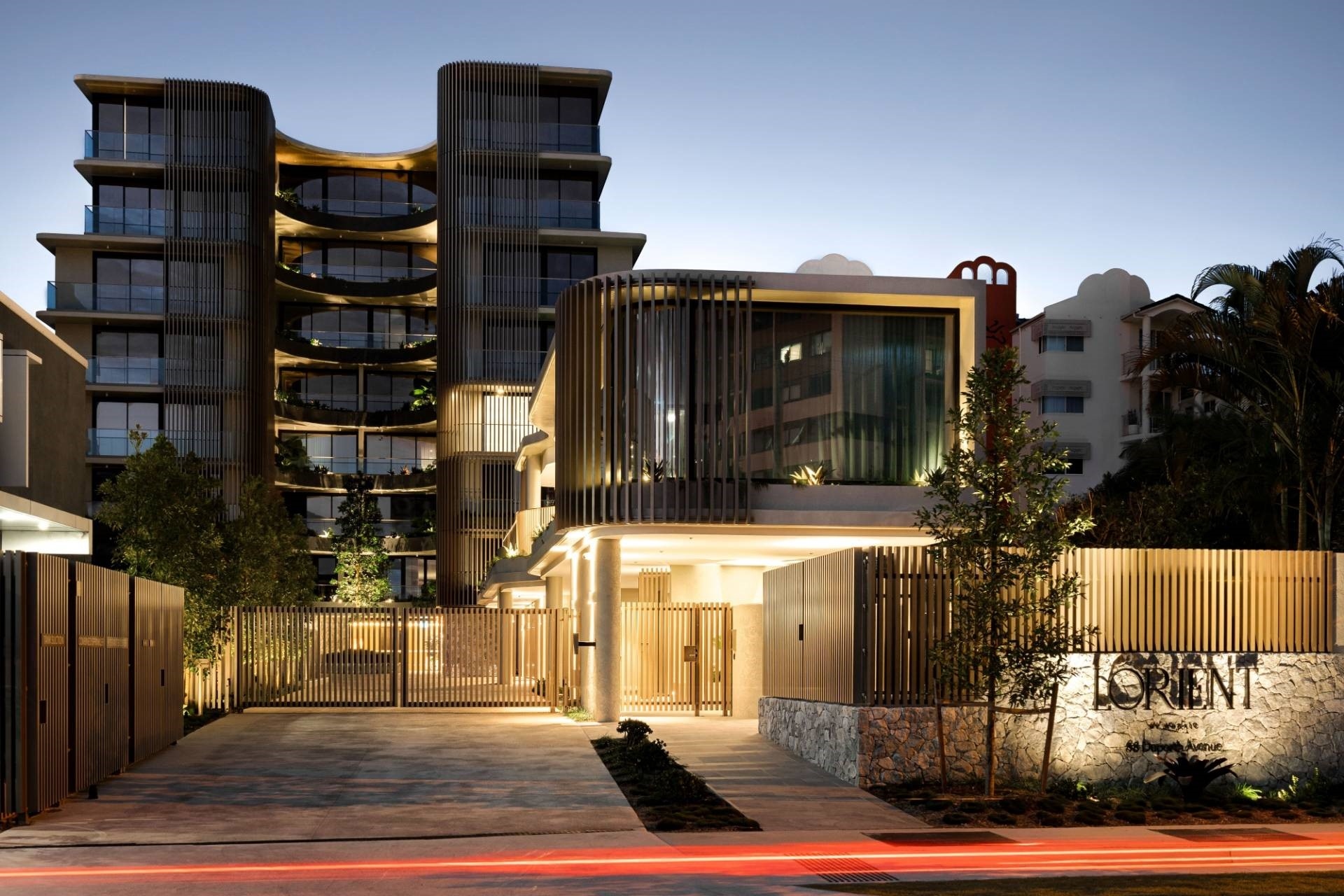 The Lorient building, a collaboration between Mosaic Property Group and Bureau Proberts, has been widely recognised for its curved architecture that mirrors the movement of the Maroochy River, with natural materials and sculptural design.