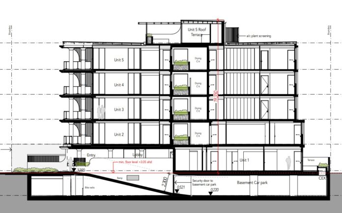 A proposal for an over-height block of five whole-floor apartments has been submitted for council approval.