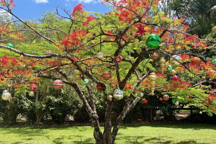 Photographer Prue Henschke was driving between Doonan and Cooroy when she spotted and snapped a photo of this beautiful Royal Poinciana tree in flower decorated for Christmas. Happy Christmas Eve everyone.