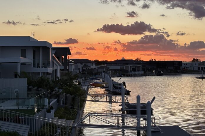 Tom Regener snapped this image of jetties and pontoons along a Pelican Waters canal amid a red sky at night.