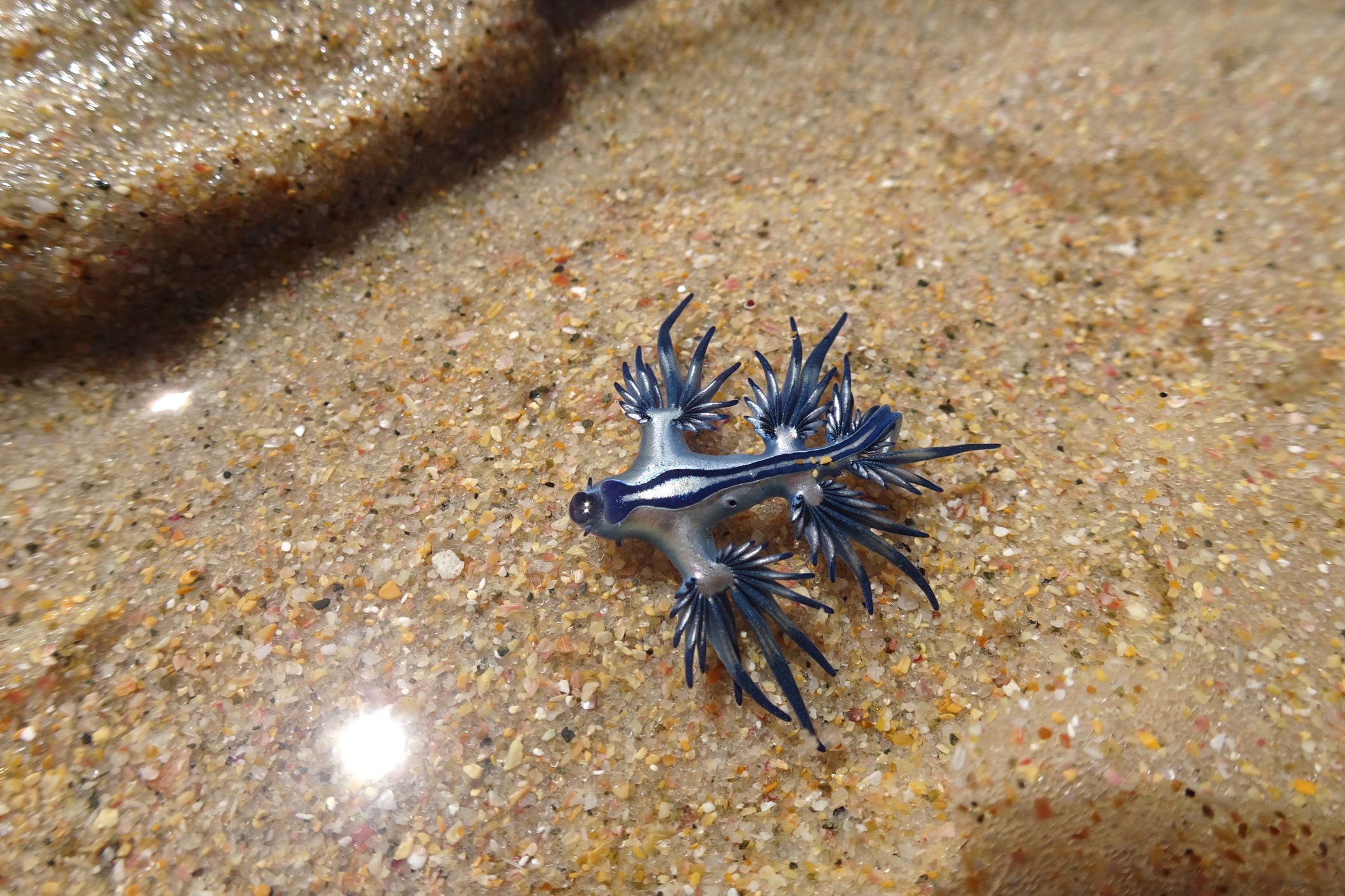 Glaucus atlanticus, also known as blue dragons, have washed onto some local beaches in recent weeks.