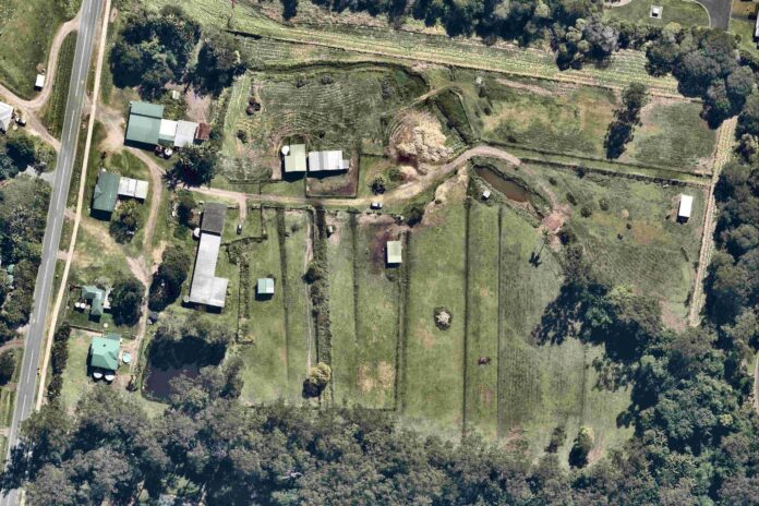 Farleigh Farms spans about 52 acres across both sides of Parsons Road, with flood-prone paddocks historically used for sugarcane and now for livestock. The farm currently pastures horses, sells composted manure to the public, and includes several dwellings occupied by family members and farm workers.