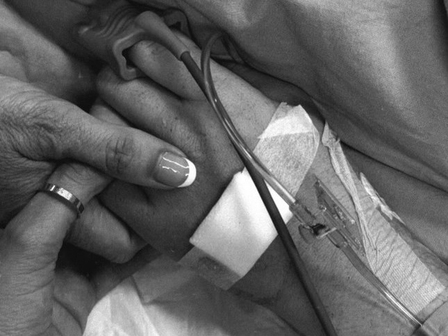 Daniel’s family holding his hand in hospital.