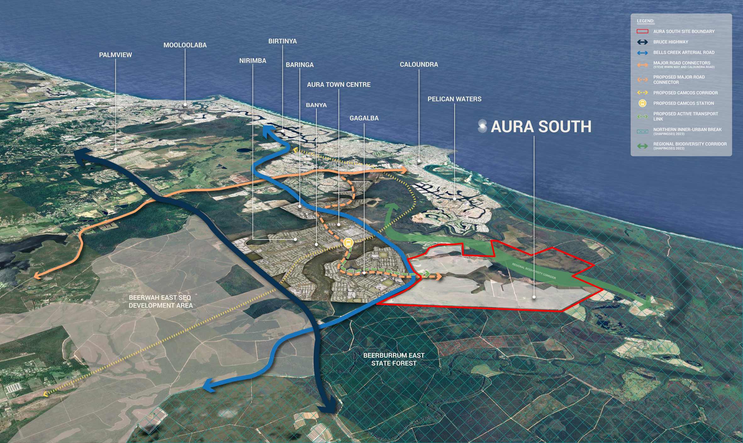 “Ecological assessments by a team of independent experts have confirmed Aura South can be developed to preserve the environmental, cultural and lifestyle values of the Sunshine Coast,” it states.
