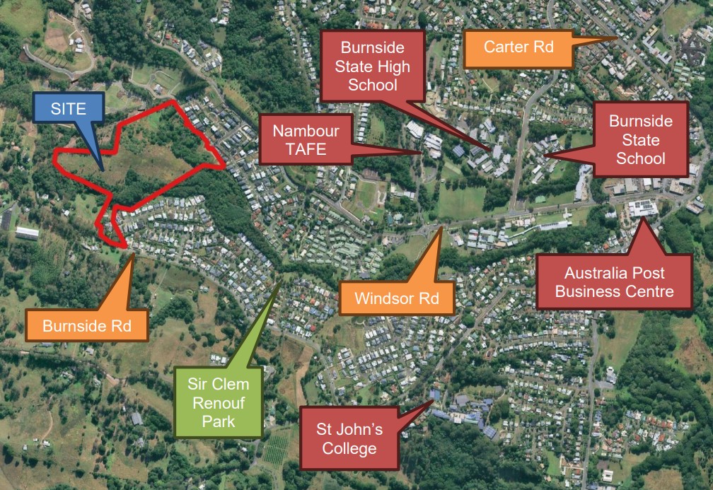 The location of the proposed subdivision within the broader Nambour area. Picture: Subdivisions (Qld)