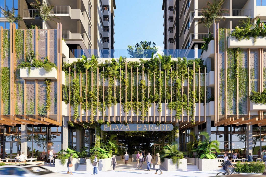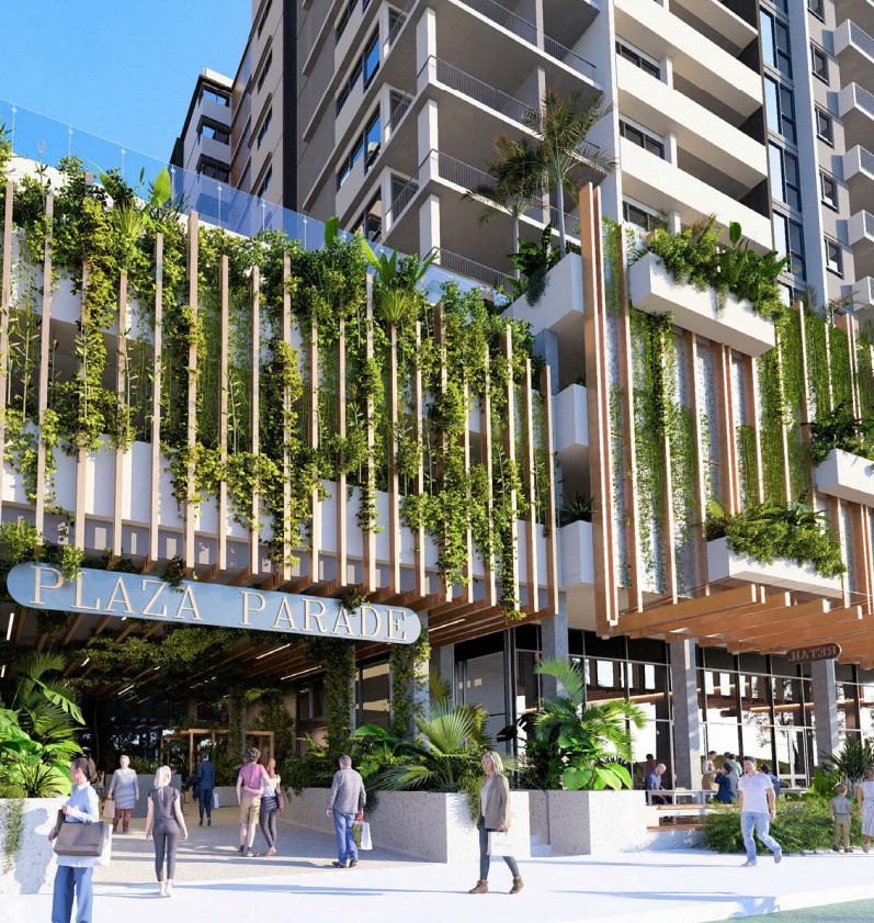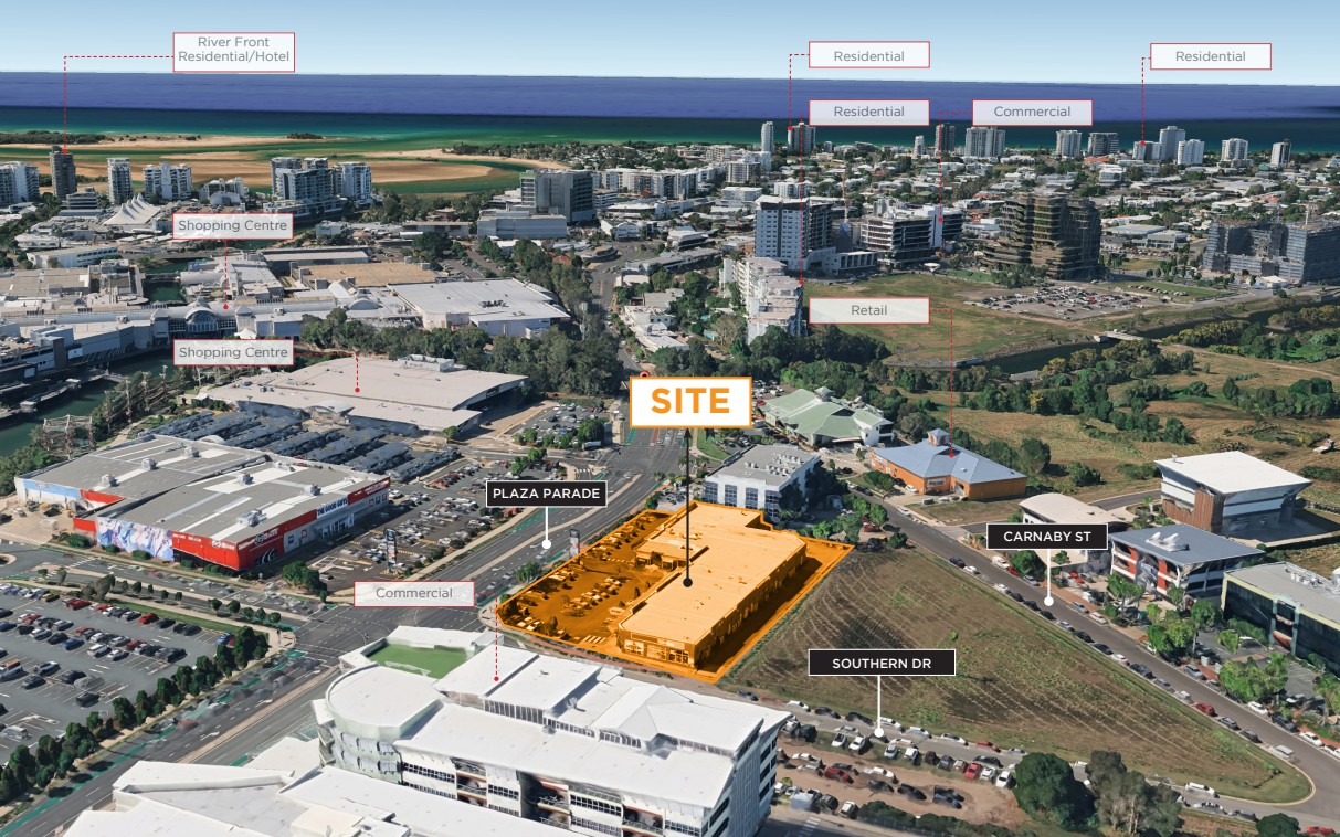 The site, which has frontages to Plaza Parade and Southern Drive, is currently occupied by a single-storey commercial complex known as the Plaza Markets, which includes Flannerys health food store, a Snap Fitness gym and several eateries.