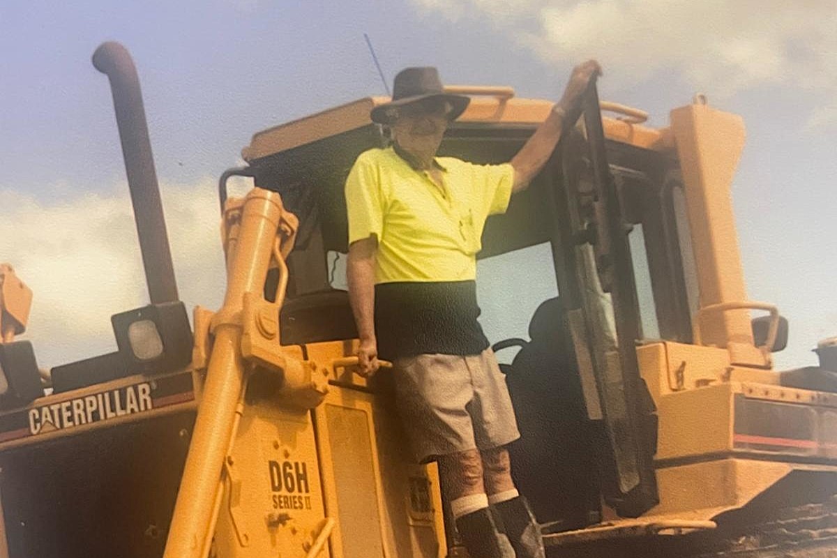 Bob Marshall driving a dozer, aged 83, at Marshall Lakes.