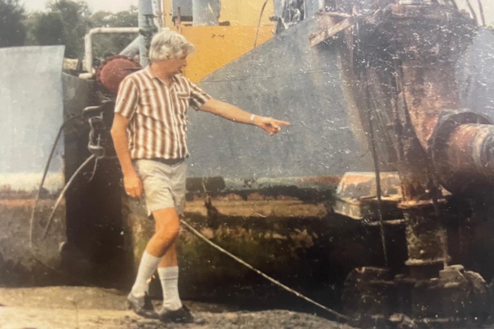 Bob Marshall and his self-built dredge in the early 1970s.