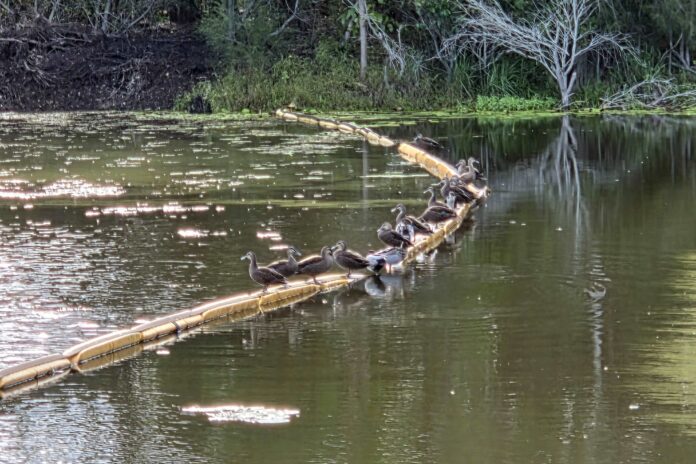 Have you got all your ducks in a row today? Photographer Nick Collins captured this flock of ducks on a lake at Parklakes Wetland in the late afternoon.