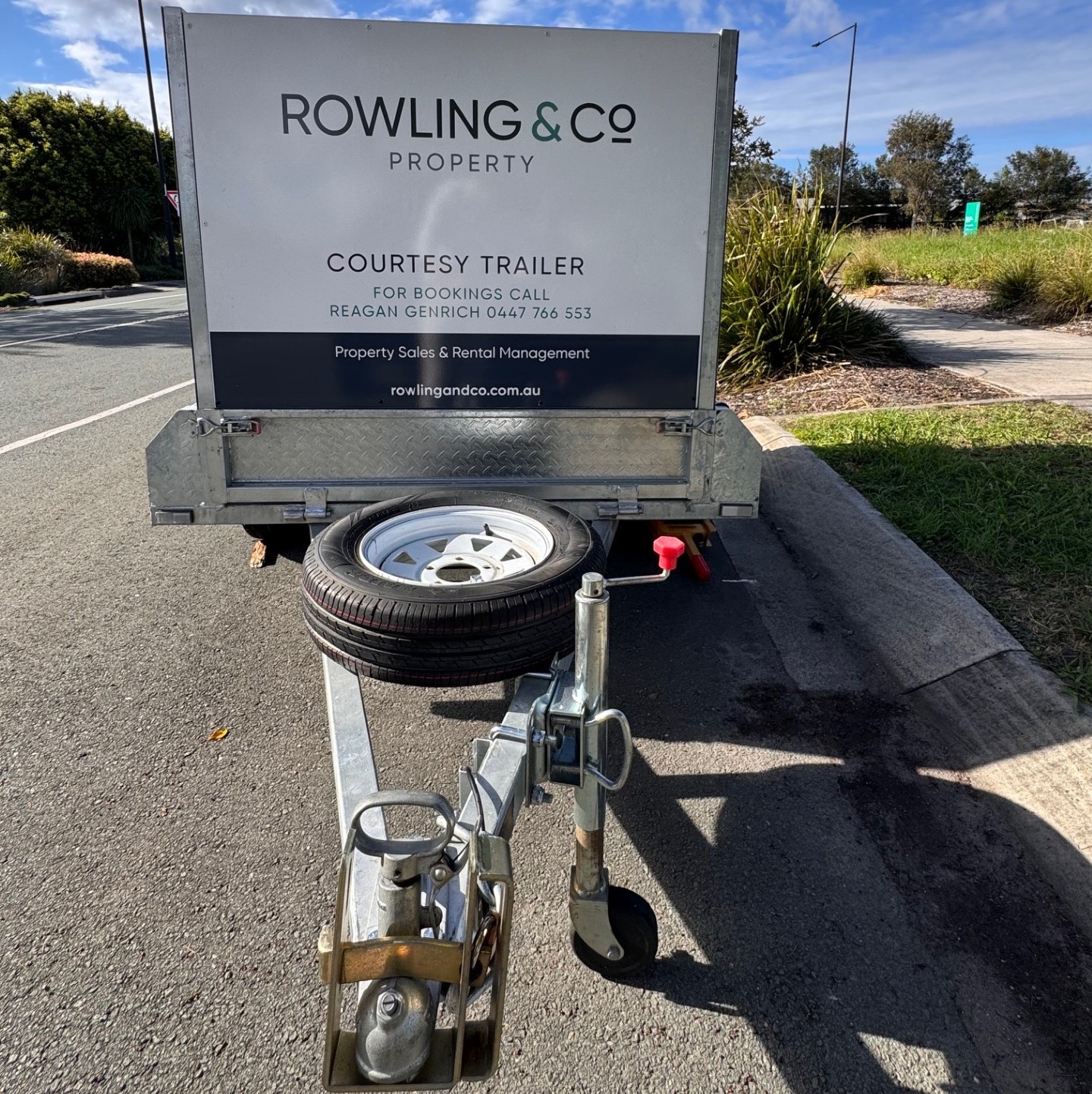 The registered cage-style trailer, fitted with signage on its sides, has been parked at 121 Harmony Boulevard for around four months.