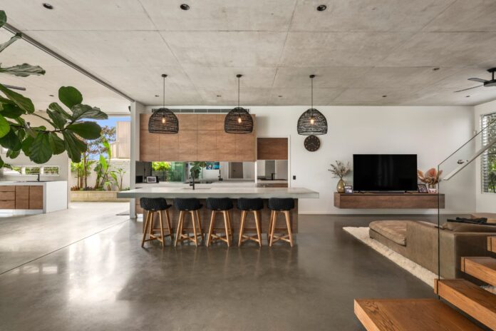 The home itself spans more than 500sqm under roof and was constructed using tilt panel concrete, a method credited for both durability and low maintenance. It even received an industry nod for its craftsmanship: the 2019 Master Concreters Supreme Award.