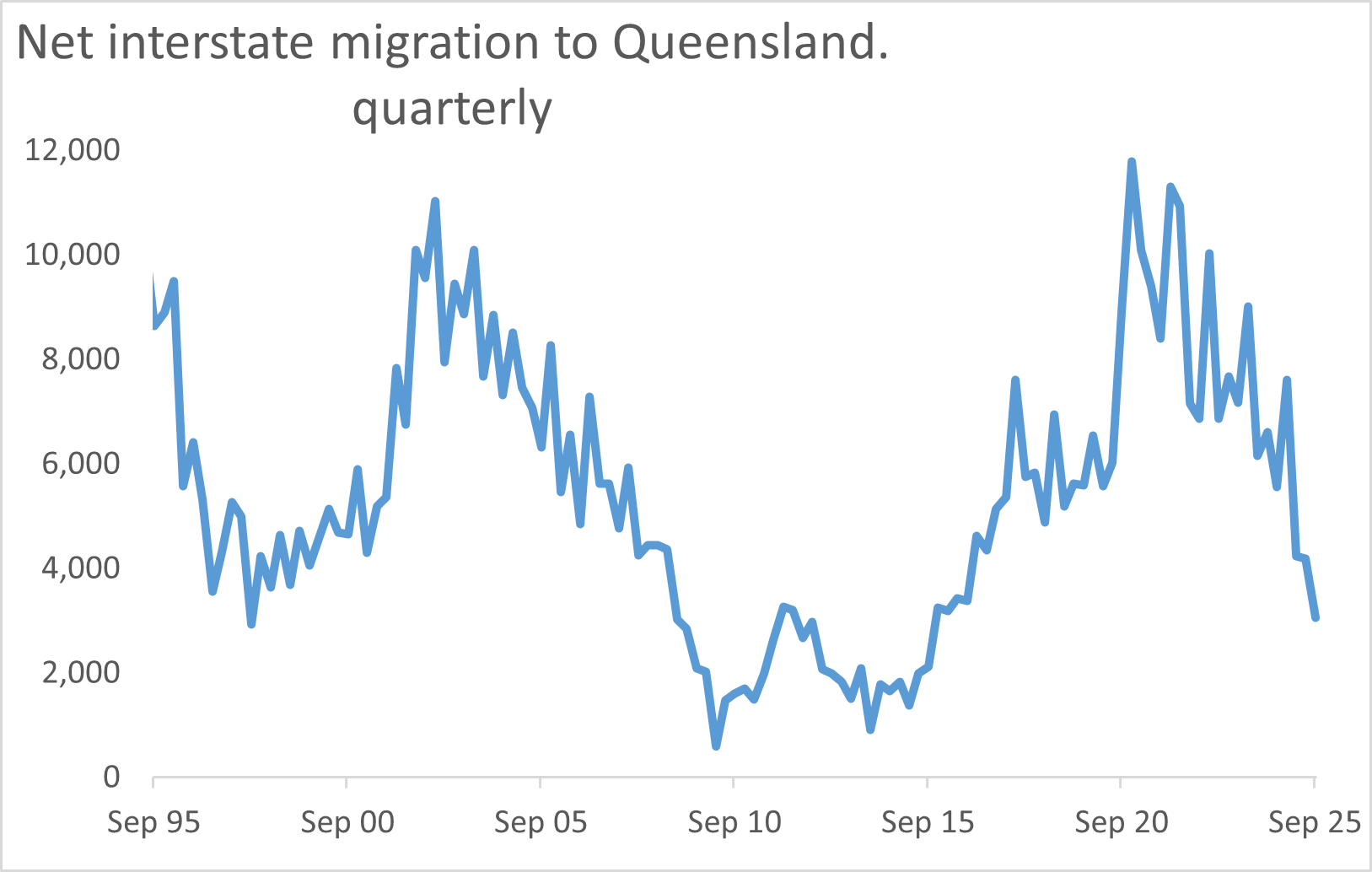 “Based on the most recent interstate migration data from the ABS (Australian Bureau of Statistics) Q3 2025, interstate migration to Queensland hasn’t been this low in a decade (since Q3 2015).”