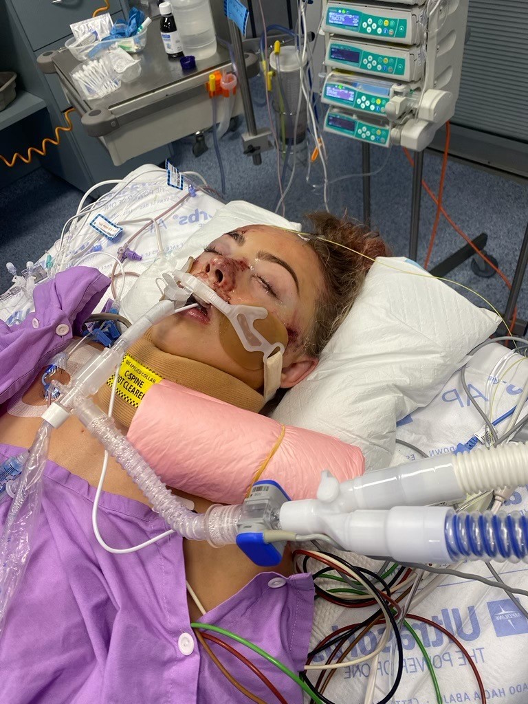 Ms Leary was heavily sedated because of her head injury, so she was on a ventilator to keep her airway safe and control her breathing.