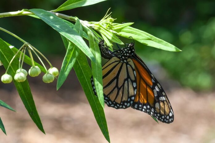 Photographer Greals captured the moment this Monarch butterfly laid her eggs on a plant at Coes Creek near Nambour.