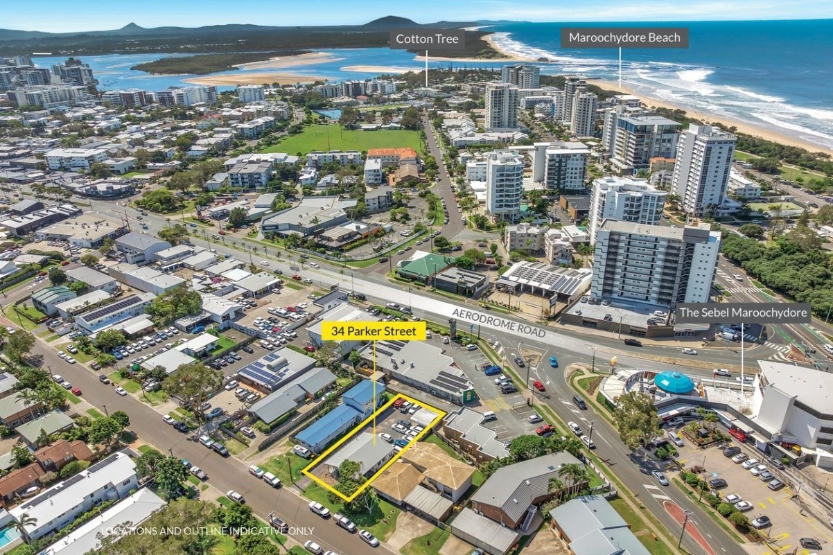 The property at 34 Parker Street sits on a 644sqm block, and draft provisions in the proposed Sunshine Coast Council planning scheme could see the 8.5m height limit lifted to 35m, opening the door for a significant vertical development opportunity close to the emerging Maroochydore CBD.