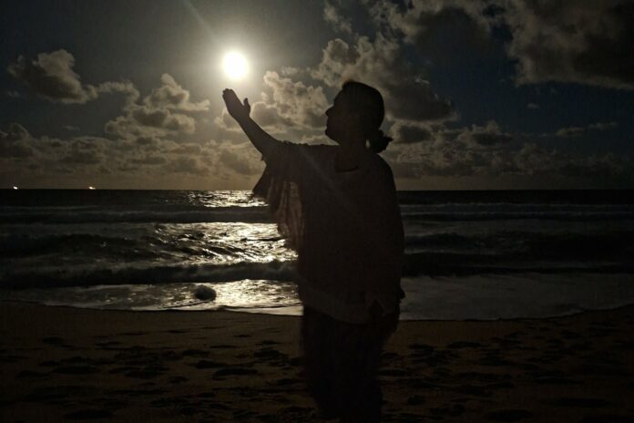 Photographer Gary Disney took this artistic photo of a human ‘reaching’ for the moon at Currimundi Beach.