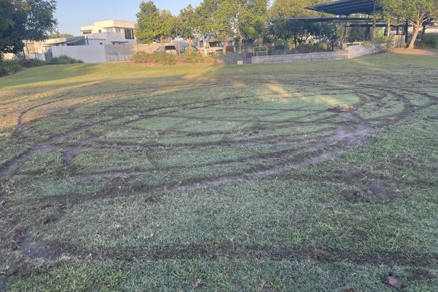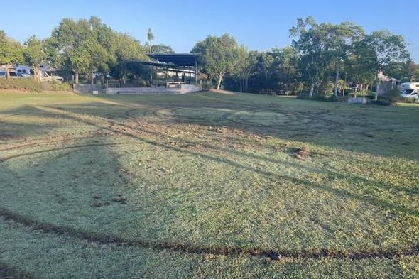Deep circular tyre tracks were carved through a large grassed area at Dardgee Park in Mountain Creek, with the damage highlighted in a social media post by Division 6 councillor Christian Dickson.